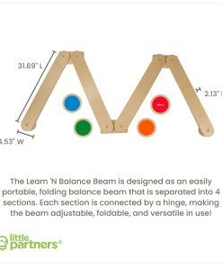 Equilibra la diversión y el aprendizaje espacial con el set Little Partners Learn N’ Balance, ¡completo con 4 piedras de equilibrio! Desarrolle el equilibrio de su pequeño de forma segura mientras fomenta la autoestima, el desarrollo espacial y el aprendizaje sobre los colores. También puede agregar nuestras tres nuevas colecciones de Step ‘N Learn Stepping Stones – Formas, Colores y Números – ¡para más diversión de aprendizaje! El balanceador Learn N’ Balance está diseñado como una viga de equilibrio plegable fácilmente portable que está separada en 4 secciones. Cada sección está conectada por una bisagra, lo que hace que la viga sea ajustable, plegable y versátil en su uso. Edades de 18 meses hasta 4 años, hasta 100 libras. INFORMACIÓN DEL PRODUCTO CUATRO PIEDRAS DE EQUILIBRIO INCLUIDAS Diseño portátil que ahorra espacio Múltiples opciones de juego para fomentar la creatividad! El estilo contemporáneo lo convierte en la adición perfecta a cualquier interior Excelente elección tanto para el hogar como para el aula Materiales responsables DETALLES QUE IMPORTAN CERTIFICADO GREENGUARD GOLD: Este producto ha pasado por rigurosas pruebas científicas para más de 10,000 emisiones químicas y COV. Contribuye a un aire interior más limpio, creando un ambiente más saludable para que su bebé duerma, juegue y crezca. Construido con las mejores capas de Abedul y Álamo que cumplen con las normas EPA TSCA Título VI y FSC (Forest Stewardship Counsel). Acabado en pinturas y materiales seguros para niños. Probado en seguridad según ASTM F963-17 y 16 CFR Part 1307 para plomo, metales pesados y ftalatos. Nuestros productos vienen con una garantía, garantizando una durabilidad duradera. Dimensiones del producto: 31.69″(L)x 4.53″(W)x2.13″(H) Peso del producto: 14.98 libras. Uso recomendado: Destinado solo para niños de 18 meses hasta 4 años, hasta 100 libras.