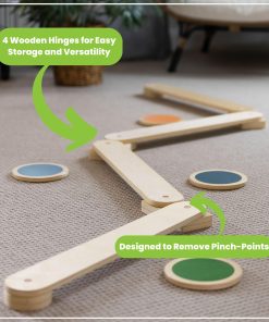 4. DISEÑO PORTÁTIL: Este diseño portátil que ahorra espacio tiene 4 secciones conectadas ajustables para que las vigas de equilibrio se puedan plegar fácilmente para guardarlas y cambiarlas para que su niño nunca se aburra. Es ligero pero está hecho de una construcción sólida de madera maciza resistente.