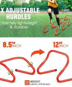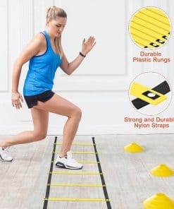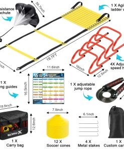 «Kit de Equipos de Entrenamiento de Agilidad»: Incluye una escalera de agilidad avanzada de 20 pies con 4 estacas fijables, 4 vallas de agilidad, 12 discos amarillos Conos de Fútbol, Paracaídas de Correr. Ya sea que seas un principiante o un experto, el equipo de entrenamiento de agilidad puede satisfacer tus requisitos de entrenamiento. Este equipo de entrenamiento de velocidad y agilidad está diseñado para niños, jóvenes, adultos, atletas, entrenadores y entusiastas del fitness. Puede afrontar desafíos voladores, aumentar la velocidad, la fuerza y la resistencia de las piernas, y mejorar la agilidad y coordinación del cuerpo. El diseño de la escalera de velocidad de ancho fijo elimina los problemas de tropiezos y ahorra más tiempo para el entrenamiento. Puedes comenzar rápidamente a entrenar en patios, parques, gimnasios o como equipo de entrenamiento para entrenamientos en el hogar, sin preocupaciones por las condiciones climáticas. Utilizado para varios entrenamientos de piernas de Equipos de Entrenamiento de Fútbol para Fútbol, Equipos de Entrenamiento de Agilidad para Fútbol, Equipos de Entrenamiento de Baloncesto y Equipos de Entrenamiento de Béisbol. También se puede utilizar para crear rutas de obstáculos interesantes adecuadas para niños y adultos. Tu satisfacción es muy importante para nosotros. Por lo tanto, puedes contactarnos en cualquier momento si tienes alguna pregunta sobre el juego de escalera de velocidad de agilidad. Responderemos tu correo electrónico dentro de las 24 horas y resolveremos el problema. Si necesitas piezas de repuesto, puedes ponerte en contacto con nosotros.