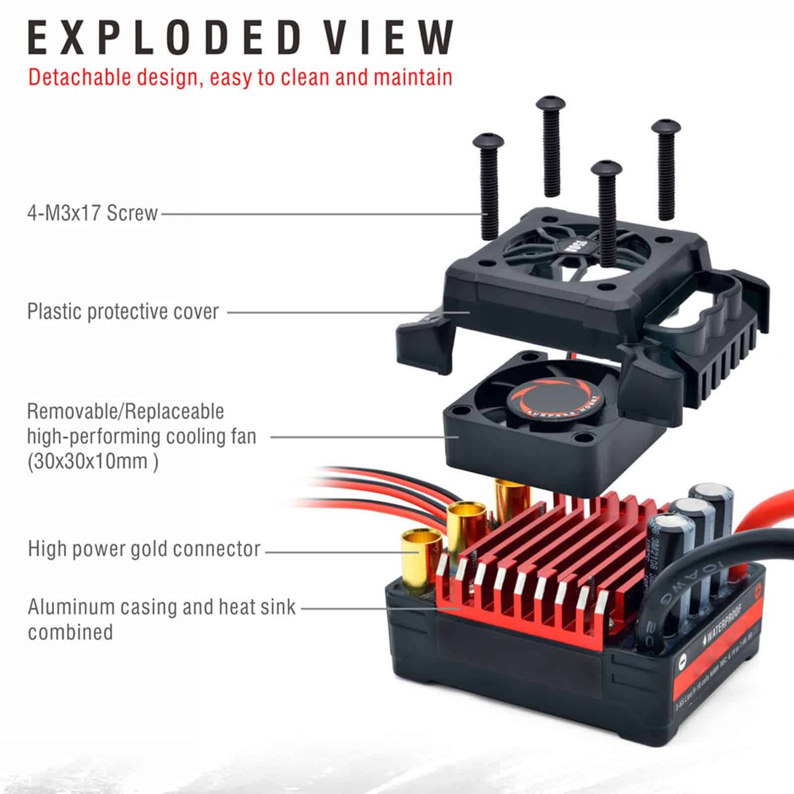 3. ESC a Prueba de Agua: El diseño a prueba de agua y polvo para todo clima del ESC, especialmente diseñado para automóviles modelo RC, tiene excelentes funciones de arranque, aceleración y lineales. Apto para, para Wltoys, para automóviles RC HSP 1/8.