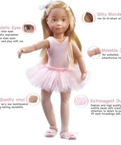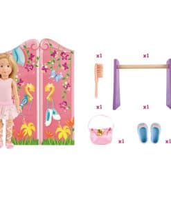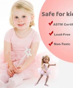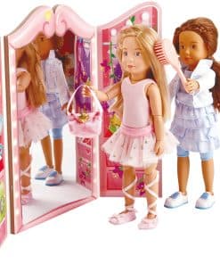 Kruselings Vera es una muñeca bailarina de cuento de hadas de tamaño 9 pulgadas con una variedad de ropa y accesorios que la convierten en la compañera perfecta para la imaginación y el juego de roles de cualquier niño. Con este set de escenografía de cuarto de ballet, los niños pueden recrear escenas de ballet en su propio hogar. Vera viene con un leotardo rosa de ballet, una falda de ballet, mallas, zapatillas de ballet y una diadema para peinar su cabello con elegancia. También incluye una bolsa, un peine, una barra de ballet para practicar y un guardarropa musical que contiene un espejo para Vera. Este set es ideal para inspirar el amor por el ballet y fomentar la creatividad en los niños. ¡Regala a tu pequeño bailarín o bailarina este increíble set Kruselings Vera y disfruta de horas de diversión y baile!