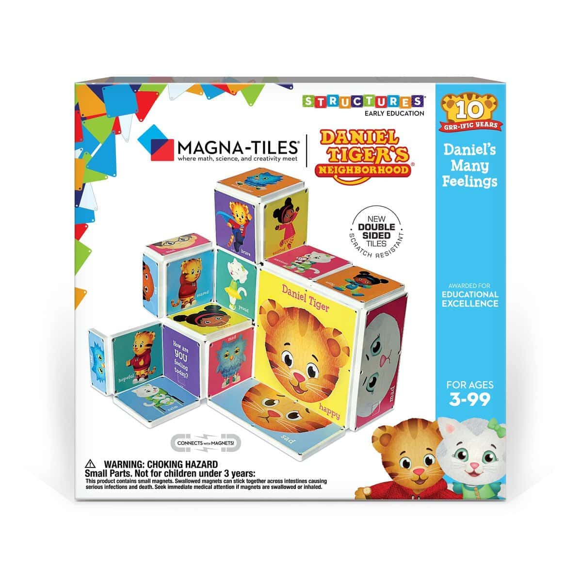1. JUGUETES MAGNÉTICOS DE DANIEL TIGRE: CreateOn y Magna-Tiles se han unido para crear baldosas magnéticas para niños, ¡presentando la vecindad de Daniel Tigre! A través del juego práctico, introduce el aprendizaje social y emocional con Daniel Tigre mientras ayudas a los niños a identificar sus sentimientos, incluso múltiples sentimientos a la vez.