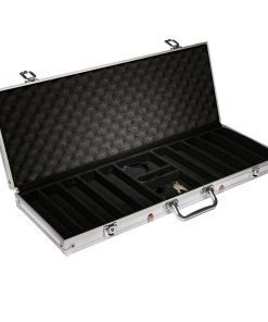 Ofrecemos una amplia variedad de estuches de aluminio para fichas de póker con distribuciones de fichas de póker preconstruidas, incluidos juegos de 300, 500, 600, 750 y 1000 fichas en estuches de aluminio estándar con cerradura reforzada y esquinas fuertes, y bandejas interiores revestidas de madera.