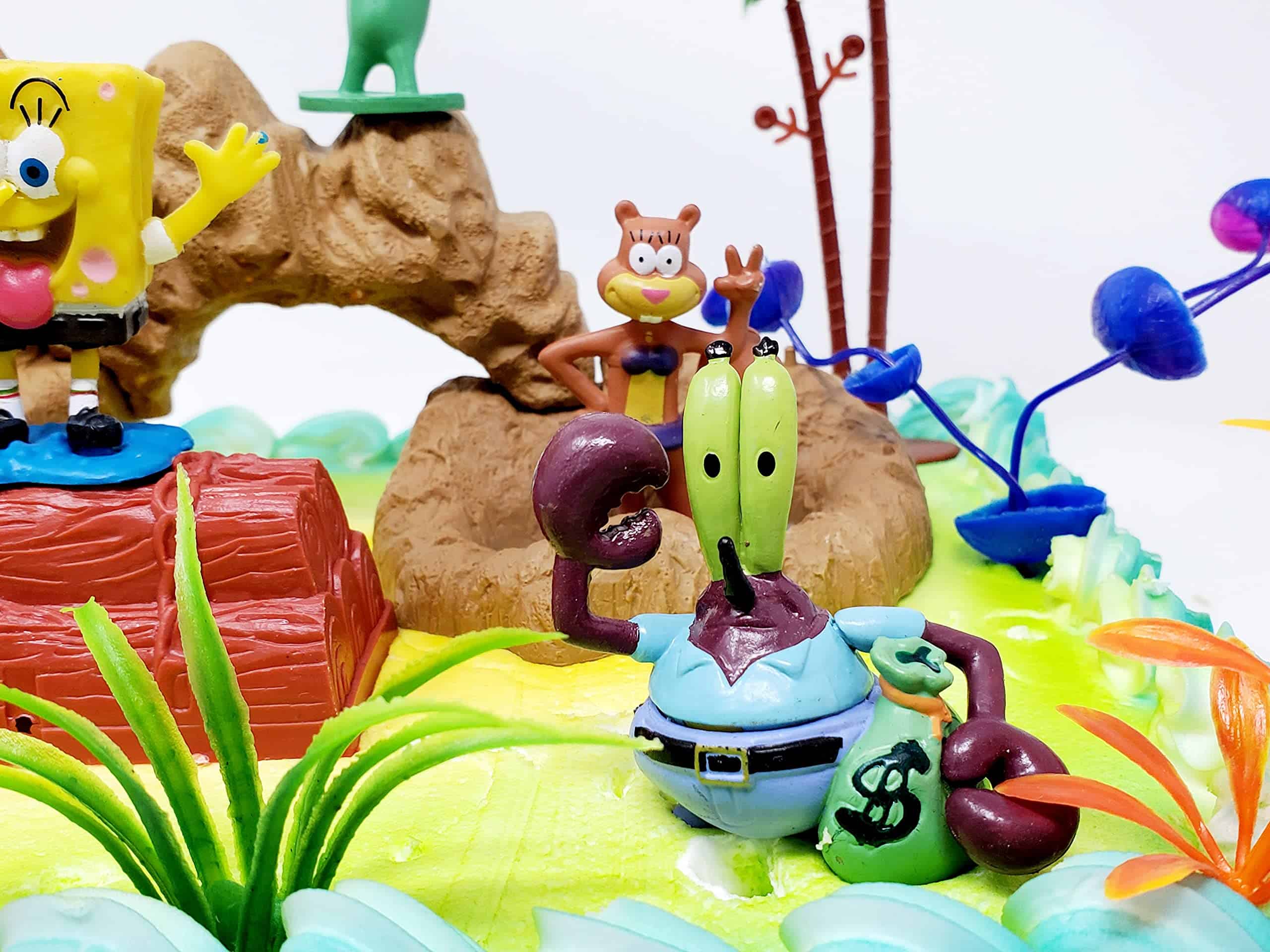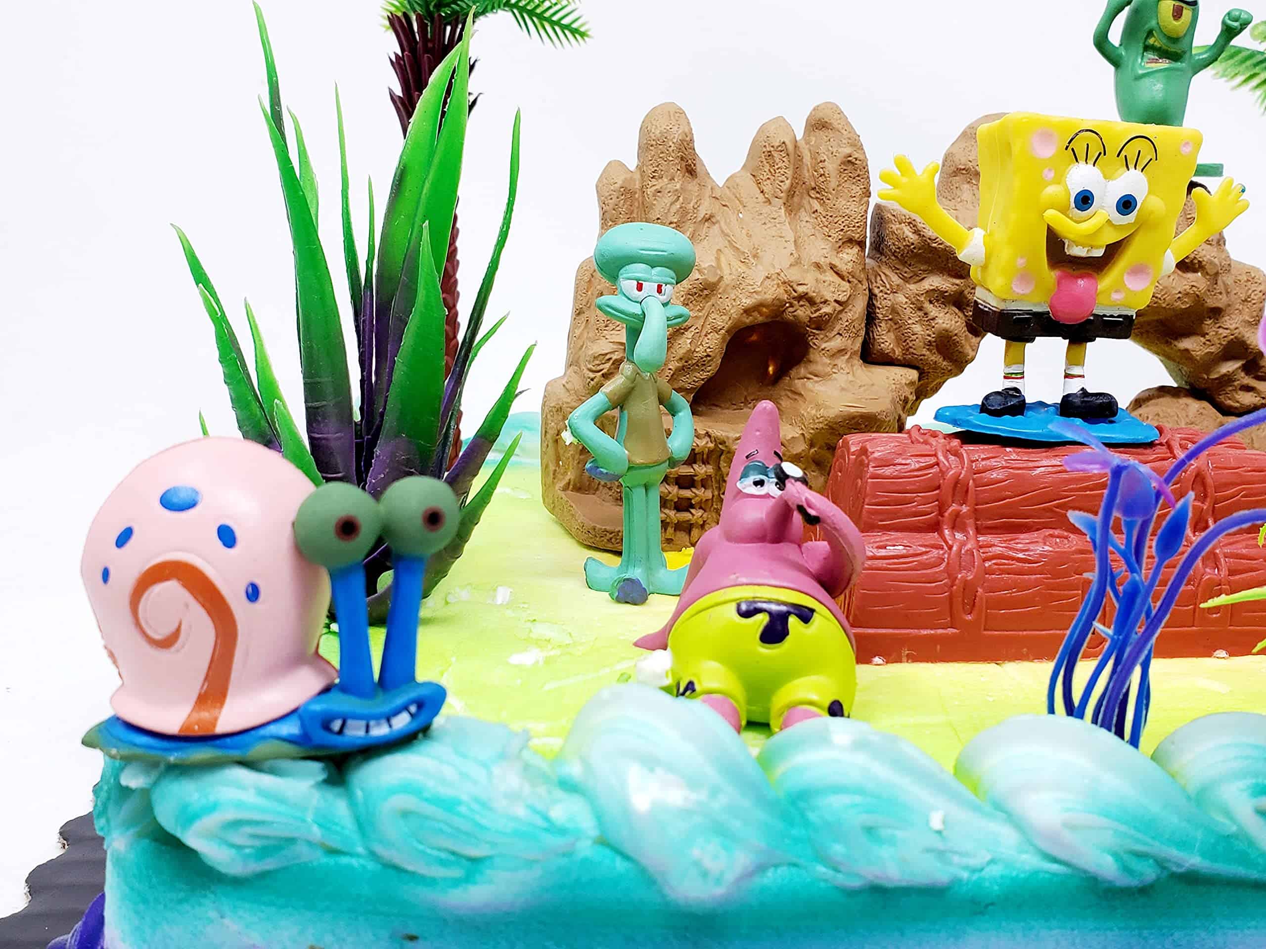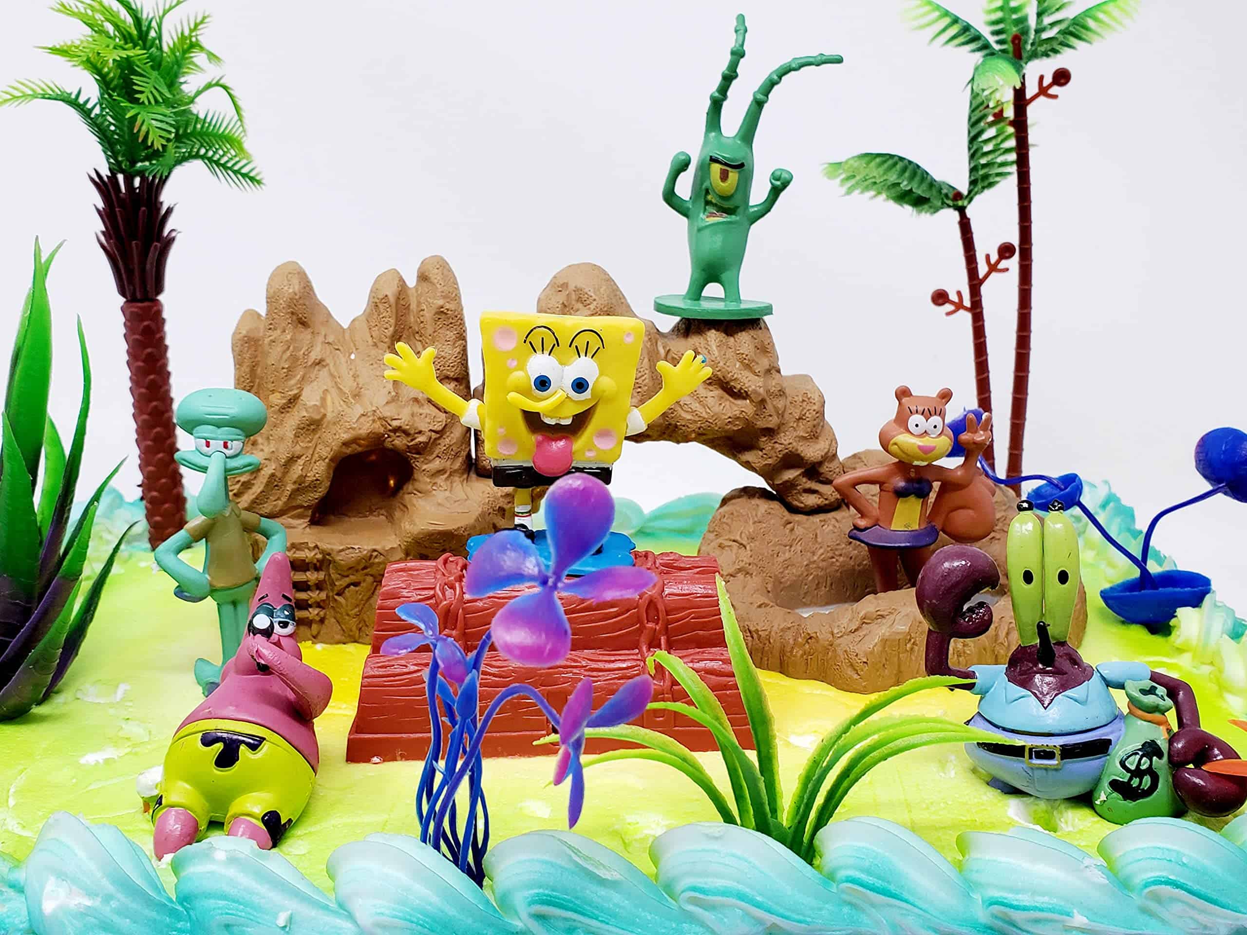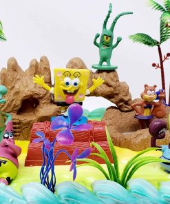 Set de Figuras para Pastel de Bob Esponja con Patrick, Plankten, Calamardo, Arenita y Amigos con Accesorios Decorativos (Diseño Único)