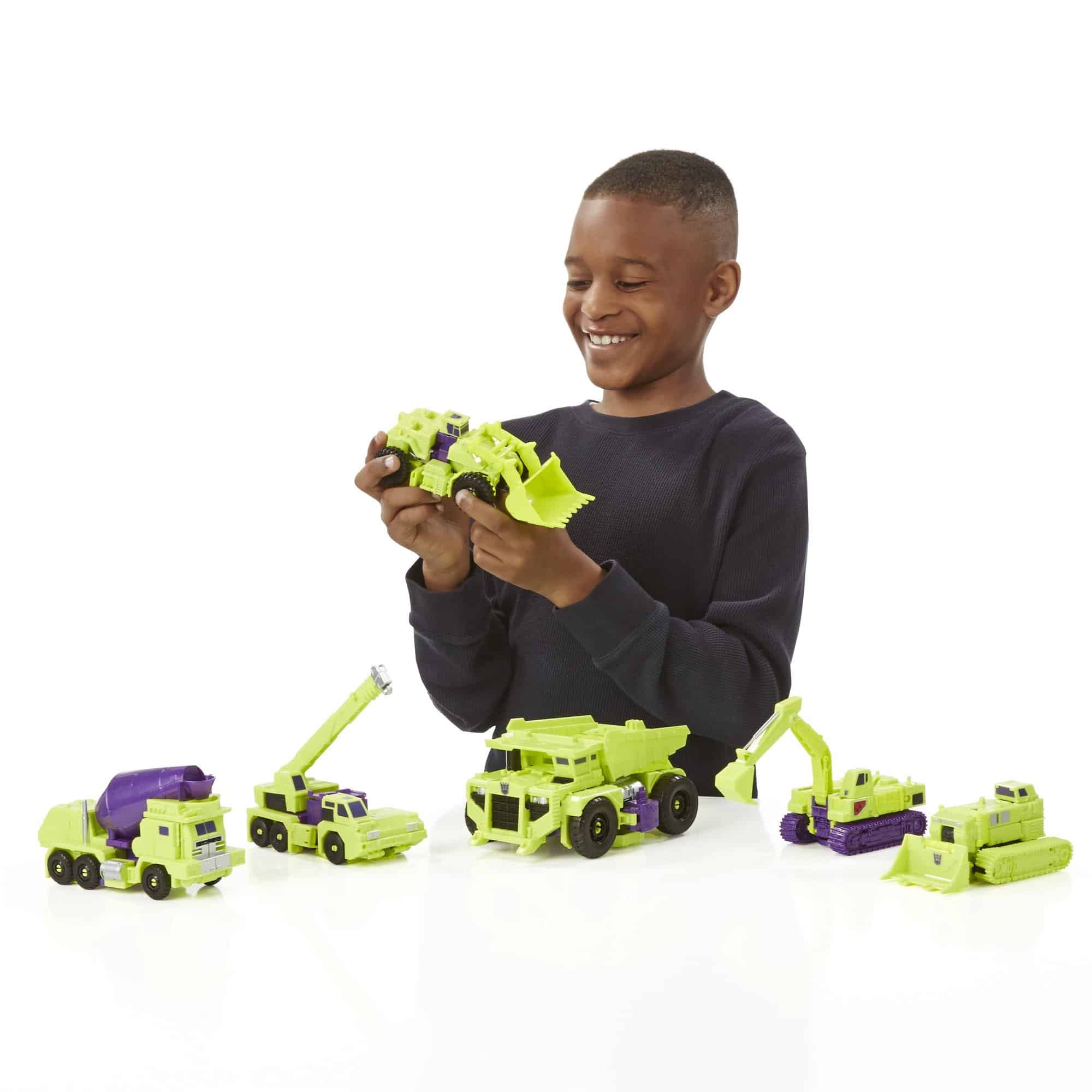 ¿Estás listo para el increíble poder de Devastator? ¡Combinarás y atacarás con el Decepticon más destructivo hasta ahora con las figuras de Construcción en este set de Devastator! El set incluye 6 figuras de Clase Voyager de Construcción: Scrapper, Hook, Bonecrusher, Long Haul, Mixmaster y Scavenger. Cada uno de estos guerreros se convierte de robot a modo vehículo y viceversa, y en modo vehículo pueden construir o destruir lo que la batalla requiera, ya sea que Long Haul transporte escombros como un camión semi o que Scrapper los recoja con una pala como una carretilla elevadora. Pero cuando la batalla requiera una guerra total, ¡se unirán para formar al aterrador Devastator de 18 pulgadas! Sus pies masivos aplastarán a los enemigos débiles mientras los ataca con fuego de blaster. ¡Lleva la destrucción al siguiente nivel con este monumental set de Devastator! Transformers y todos los personajes relacionados son marcas comerciales de Hasbro.