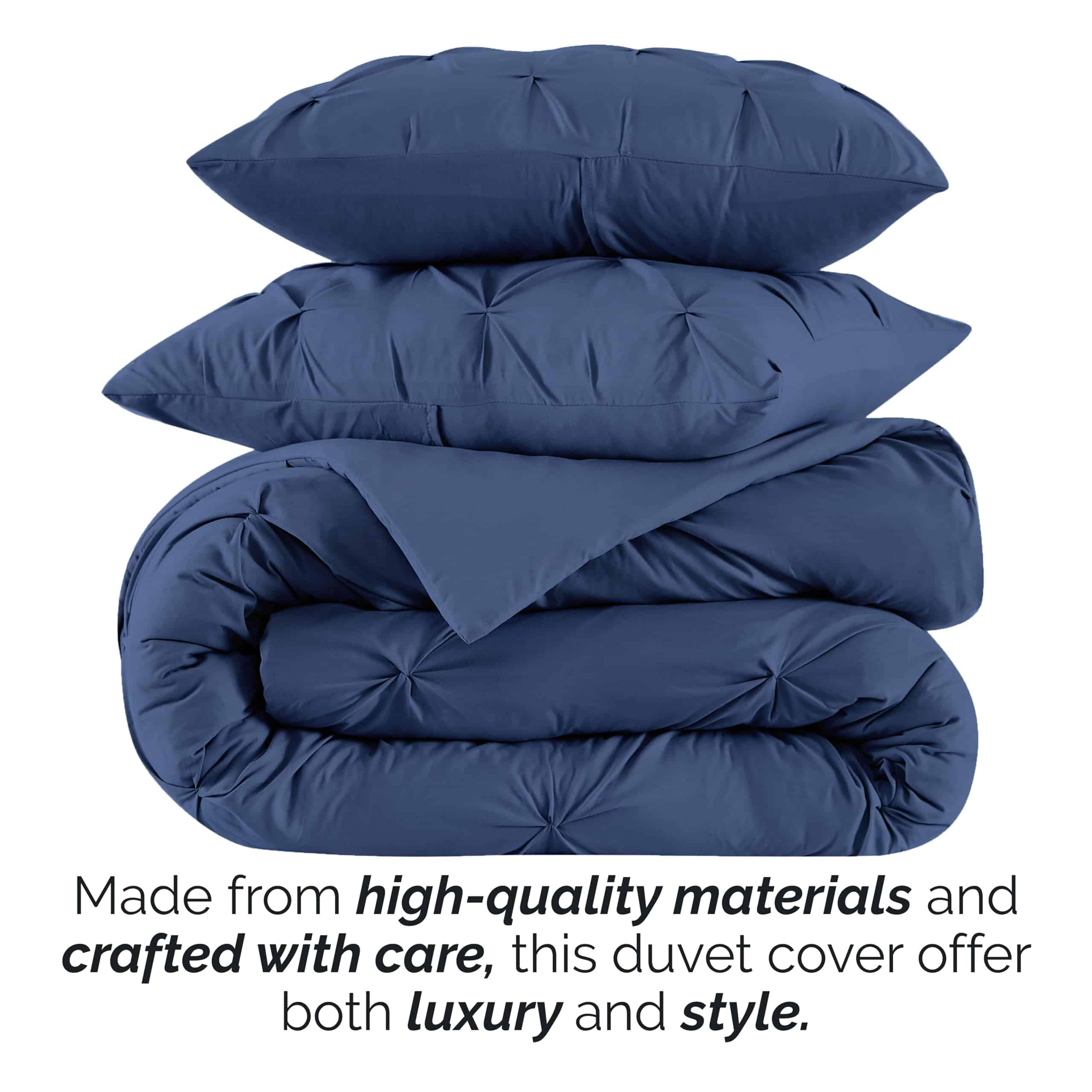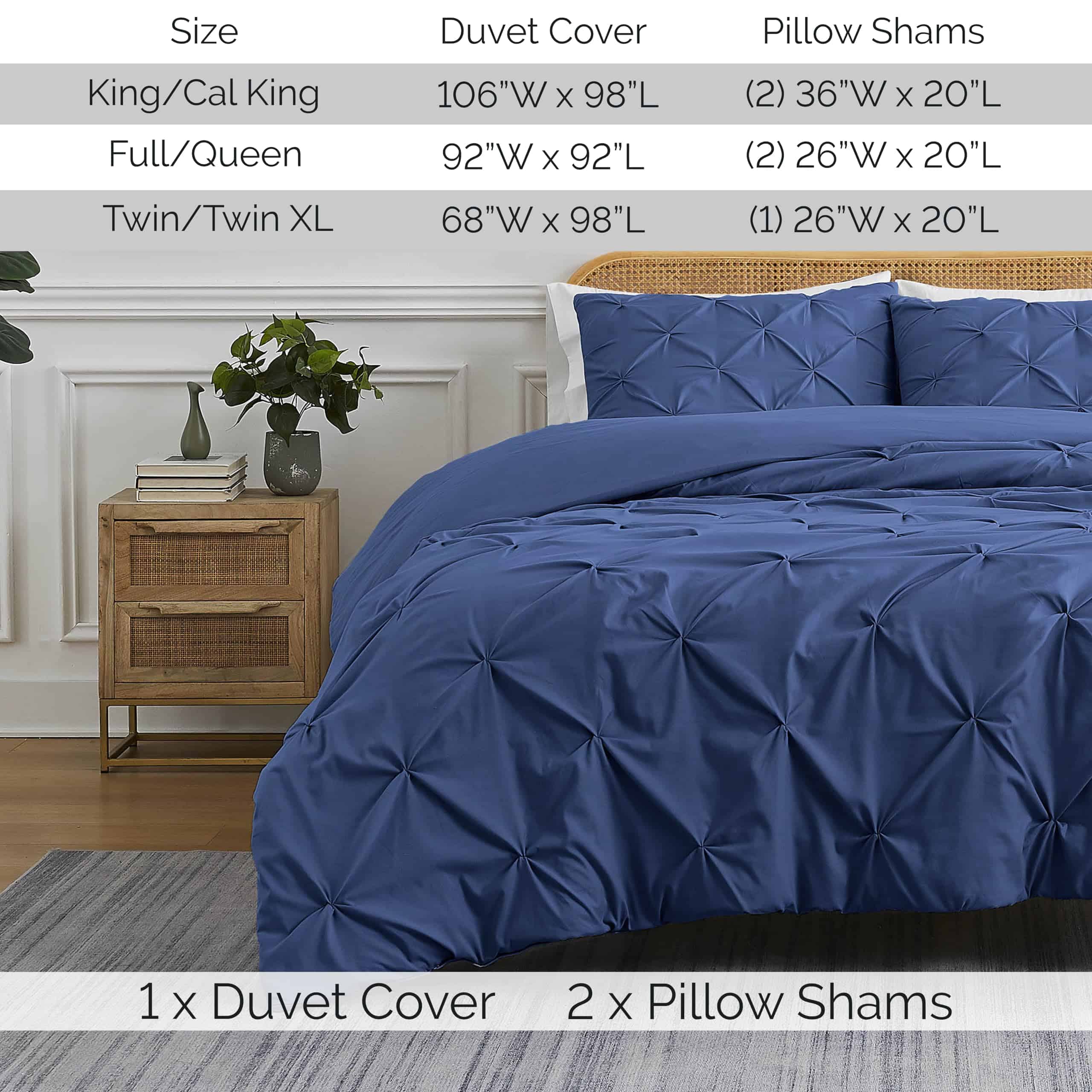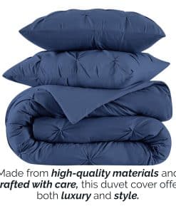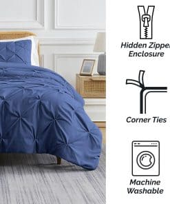1. SET DE FUNDA DE DUVET DE CALIDAD PREMIUM PARA CAMA QUEEN/FULL: ¿Buscas refrescar tu habitación? Nuestro set de funda de duvet con pliegues pinch, fabricado en microfibra ligera, suave y resistente a la decoloración, proporciona una experiencia de sueño cómoda. 2. VERSÁTIL Y MULTIUSOS: Nuestros sets de funda de duvet con pliegues pinch pueden usarse solos o como una capa adicional. Estos sets de funda de duvet para tamaño queen/full se adaptan a cualquier decoración, ya sea en un elegante loft urbano, una granja o un estilo moderno. 3. ARTESANÍA DE ALTA CALIDAD Y TELA SUAVE DE FIRMA: Este set de funda de duvet con pliegues pinch para tamaño full está fabricado en microfibra de doble cepillado y se vuelve más suave con cada lavado. También cuenta con un cierre de cremallera y cuatro corbatas en las esquinas para mantener el inserto del duvet en su lugar. 4. MARCA CONFIABLE, DE PROPIEDAD FAMILIAR Y BASADA EN EE. UU.: De nuestra familia a la tuya, estamos seguros de que te encantarán nuestros sets de ropa de cama premium. Respaldamos todos nuestros productos con un año completo de cobertura en calidad del producto y materiales. Duerme tranquilo sabiendo que estás cubierto. 5. SET DE FUNDA DE DUVET CON PLIEGUES PINCH PARA TAMAÑO QUEEN/FULL: Este set de 3 piezas incluye una funda de duvet de 92″ x 92″ y una funda de almohada de 20″ x 26″ con un cierre de sobre. El diseño texturizado añade una impresión llamativa a tu habitación, realzando su estilo y dimensión.