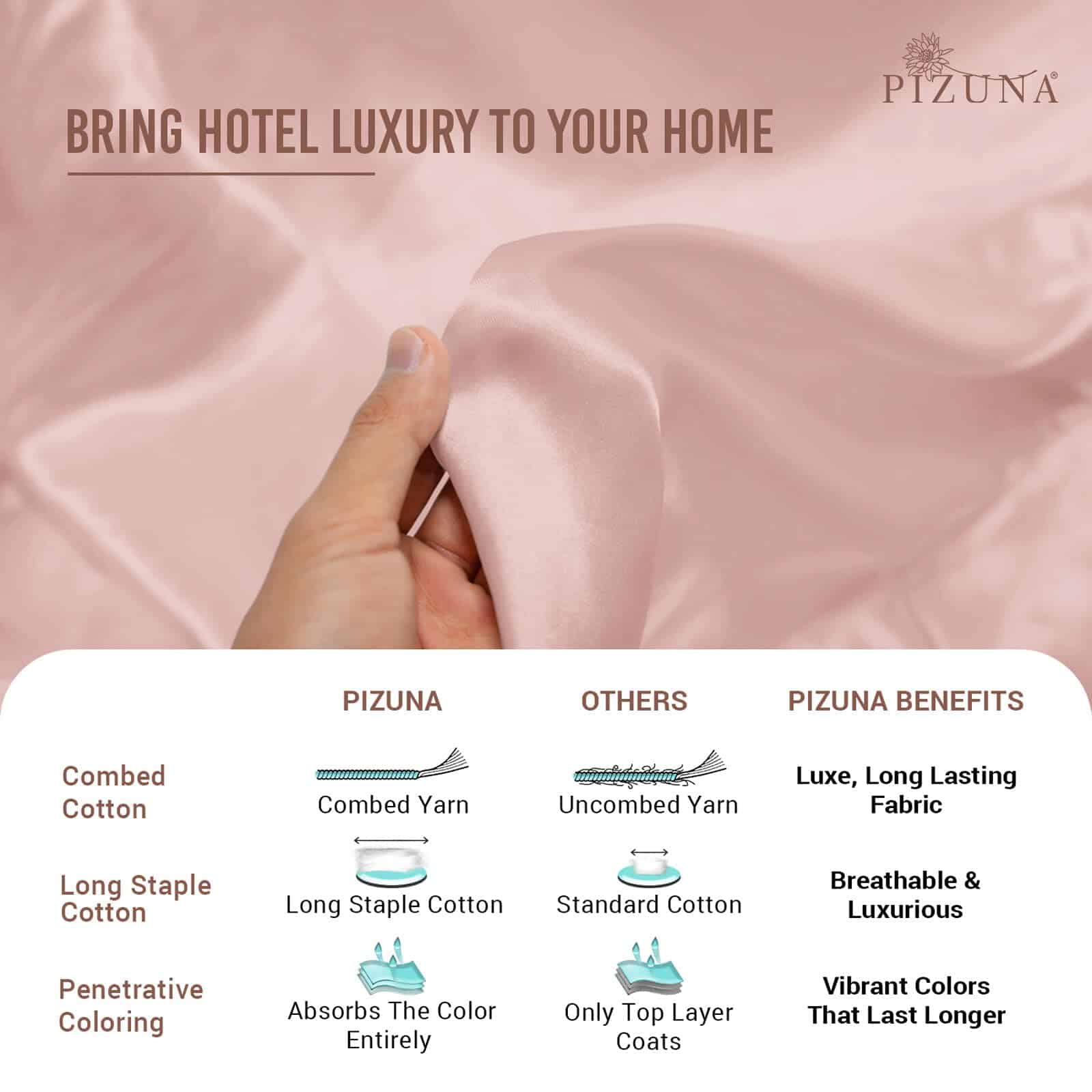 1. Fresco, transpirable y suave: Hecho con tejido de satén de algodón peinado de 400 hilos 100% de calidad superior, esta funda de edredón para queen ofrece una textura ligera hecha con hilos especialmente compactados. Un procesamiento artificial mínimo hace que esta funda de edredón para queen sea suave para todo tipo de piel, evita las sudoraciones nocturnas, absorbe la humedad y regula la temperatura corporal para dormir fresco manteniendo una elegante apariencia de hotel. 2. Lazos de ajuste inteligentes: El cierre de botón oculto y los 4 lazos en las esquinas brindan un ajuste seguro e inteligente, evitando que el edredón se amontone en el interior. El set incluye 1 funda de edredón (90 x 90 ) y 2 fundas de almohada con elegantes volantes y cierre de sobre conveniente (20 x 26 ). 3. Algodón peinado puro y natural mercerizado: Con la técnica de hilado fino de Pizuna, este set de funda de edredón de algodón para queen de 400 hilos presenta un tejido de satén de trama simple (4 arriba-1 abajo). El uso de algodón peinado mercerizado hace que este set de funda de edredón sea suave y resistente. La ropa de cama de algodón puro y natural se arruga, pero es distintivamente más fresca y transpirable. Además, se suaviza y las arrugas se reducen con cada lavado. 4. Estándar de calidad Pizuna: Los productos de Pizuna son individualmente personalizados, medidos y revisados (pieza por pieza) por nuestro equipo de Control de Calidad. El tejido de la funda de edredón de algodón para queen es certificado por OEKO-TEX y libre de AZO (2024), libre de sustancias sintéticas y respetuoso con el planeta, lo que lo hace calmante incluso para la piel más delicada. 5. Indulge de manera responsable: Esta funda de edredón de algodón para queen cumple con BSCI, es socialmente responsable y respetuosa con el medio ambiente. El uso de materiales reciclados para el embalaje puede añadir un olor desagradable que desaparece después del primer lavado en agua tibia. Hecho con tintes resistentes a la decoloración, es apto para lavar a máquina en ciclo suave, secar a baja temperatura. El uso de lejía puede afectar los colores. 6. Diseñado para un mejor sueño: Nuestros expertos en sueño estudian el comportamiento y los patrones de sueño del usuario, lo que resulta en una mejora del producto y un embalaje compacto. Disponible a nivel mundial en varios colores y tamaños, haz de esta lujosa funda de edredón para queen el regalo perfecto para tus seres queridos. 7. Pizuna se preocupa: Miles de familias felices y medios de comunicación han elogiado nuestra funda de edredón de algodón 100% para queen. Sin embargo, si no estás satisfecho con el producto, puedes devolverlo en un plazo de 30 días según la política, más allá de eso, nuestro equipo de atención al cliente estará allí para ayudarte también.