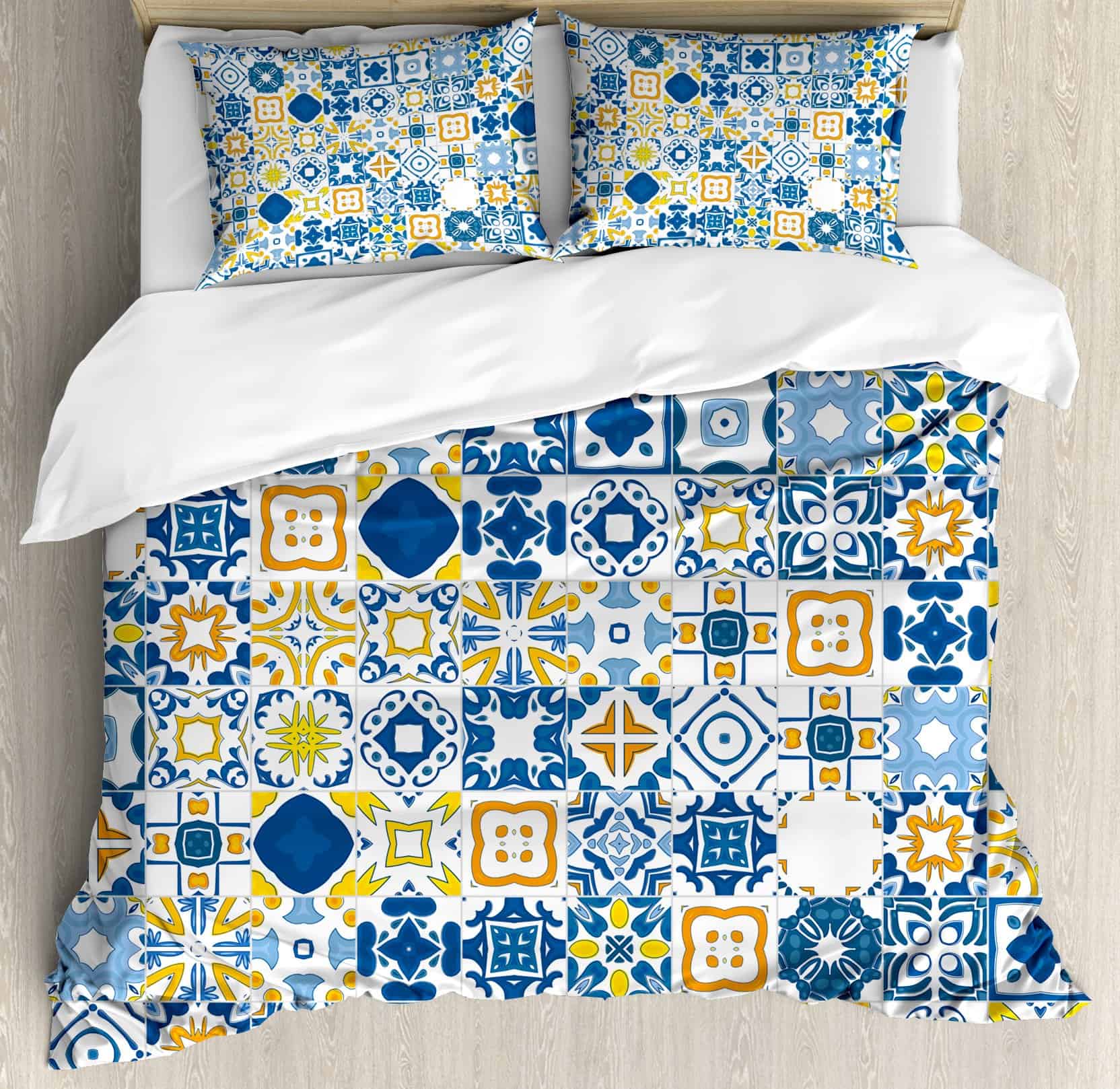 Set de Funda de Edredón Amarillo y Azul de Ambesonne,