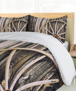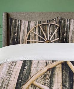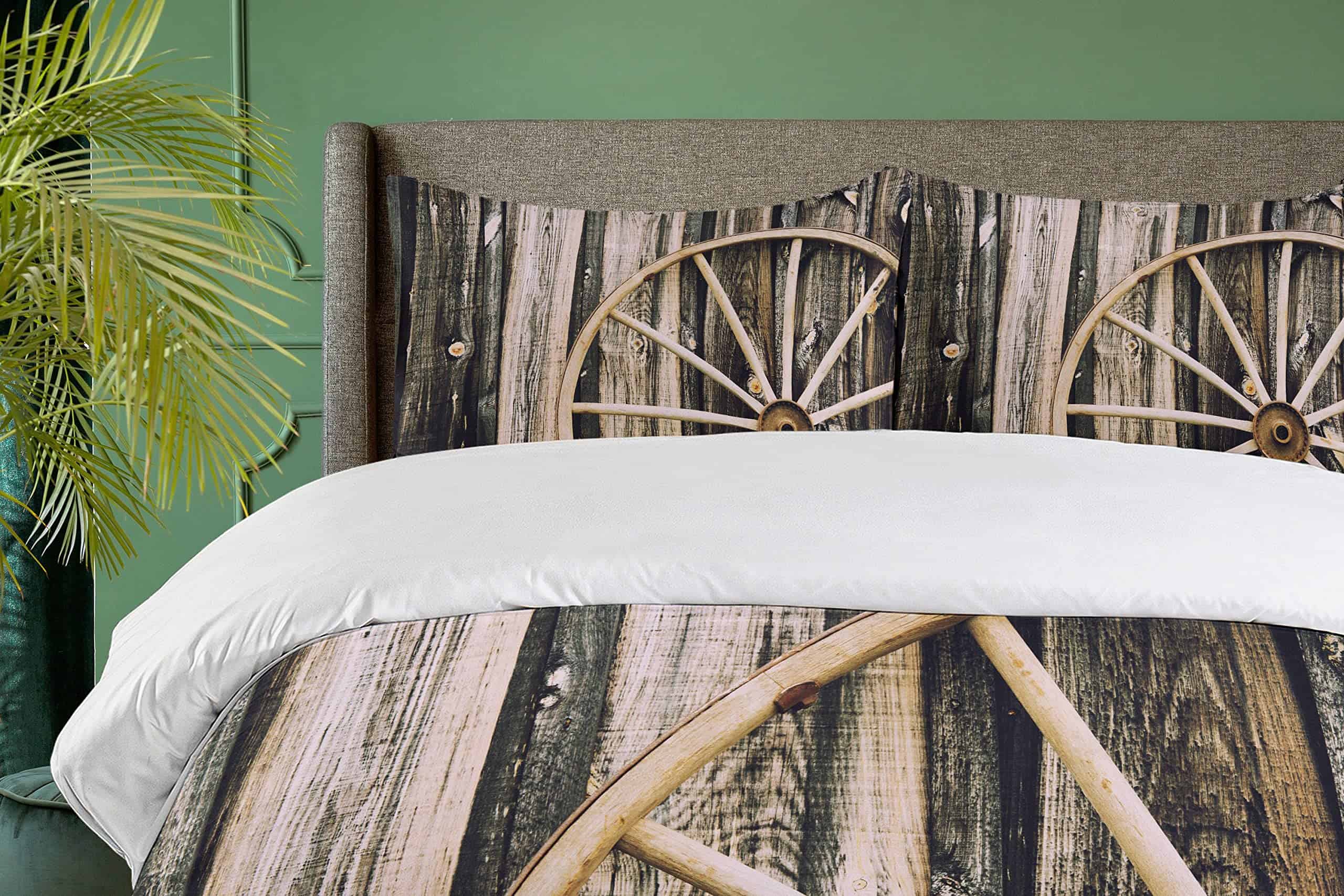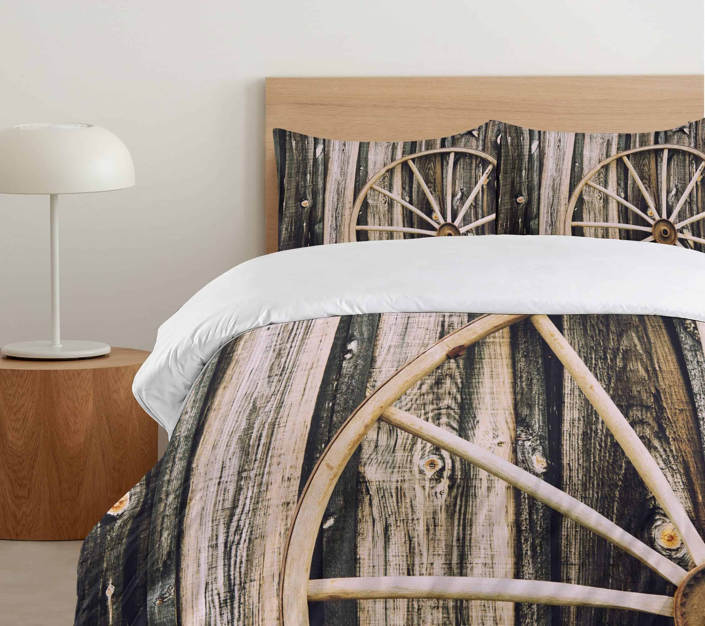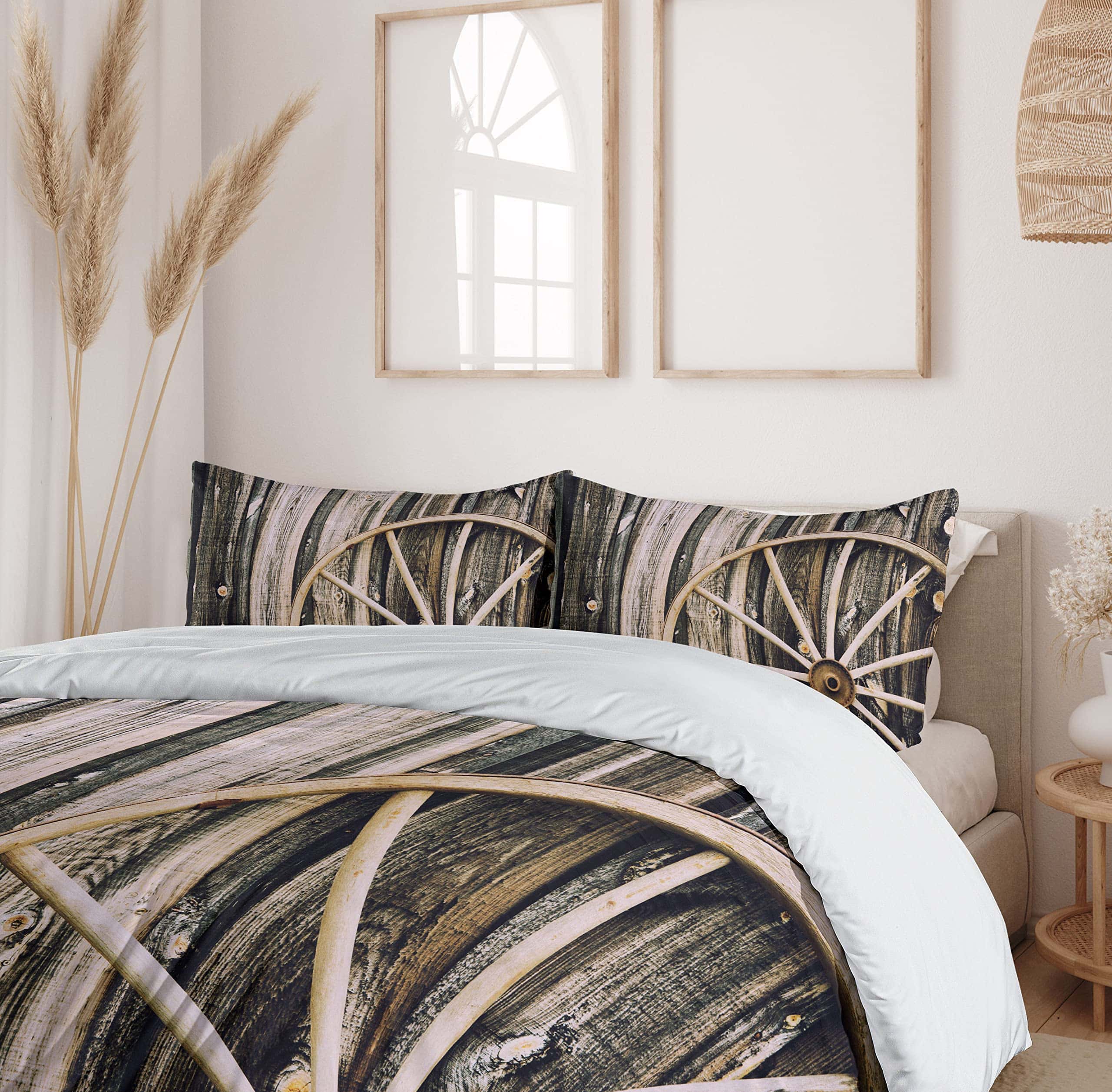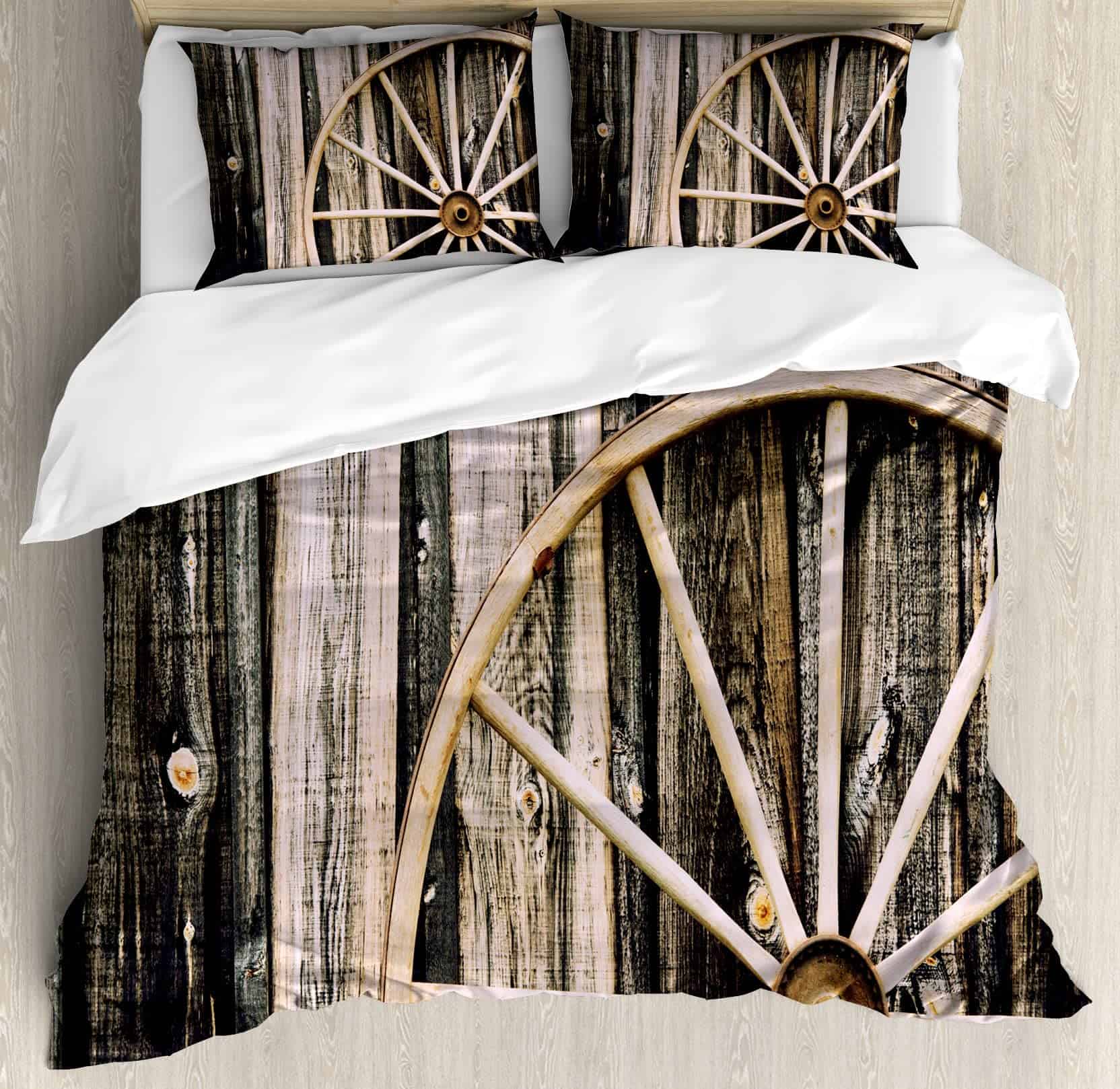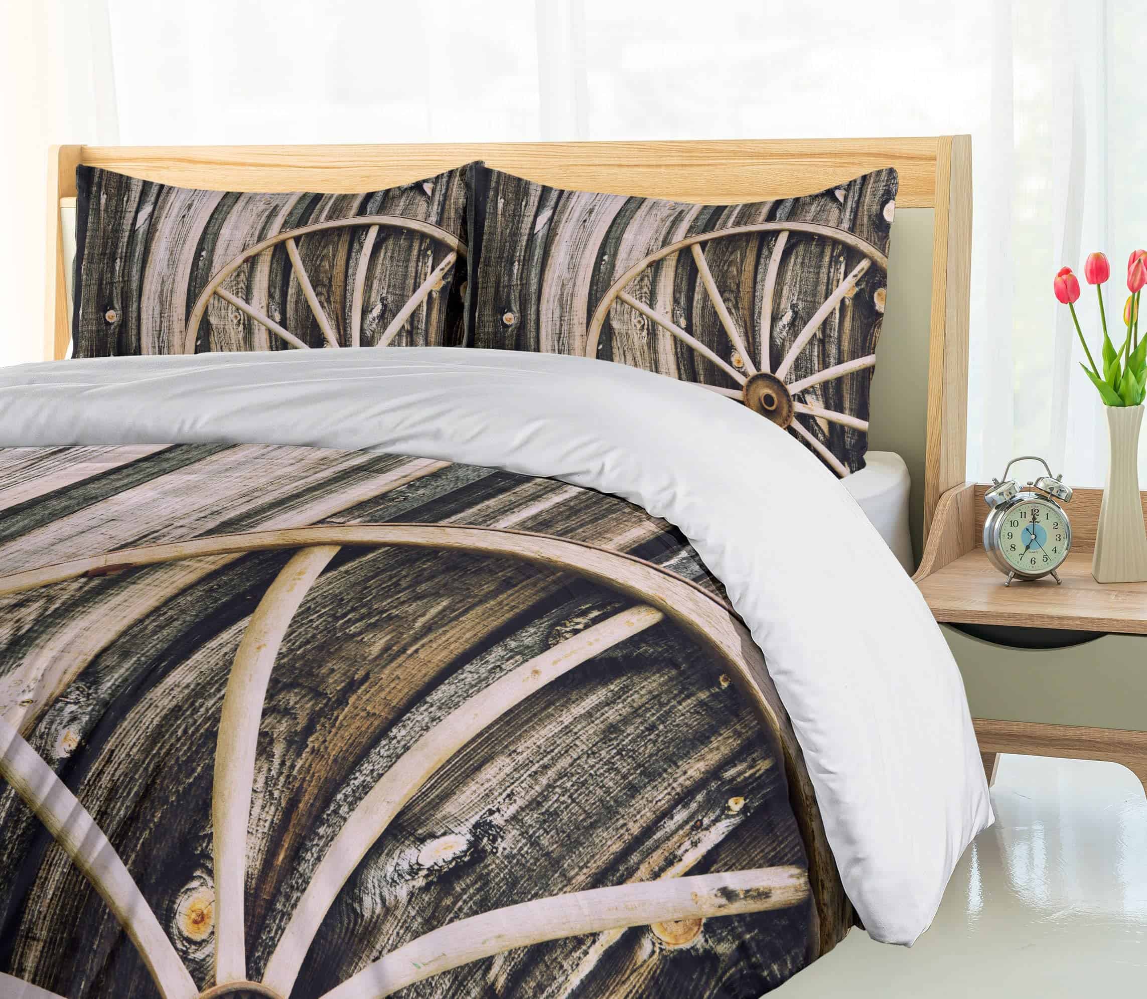 Set de Funda de Edredón Ambesonne Barn Wood Wagon Wheel,