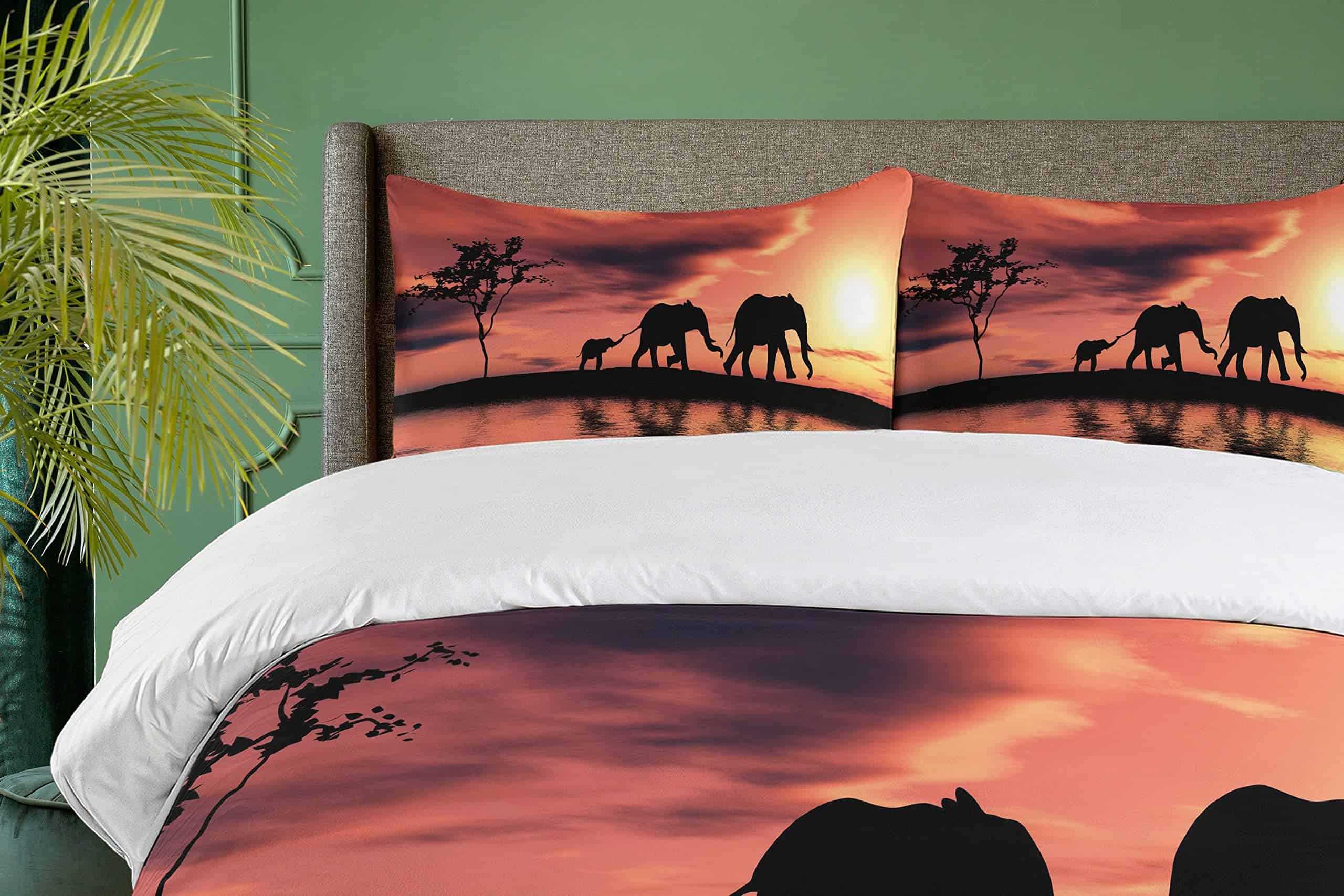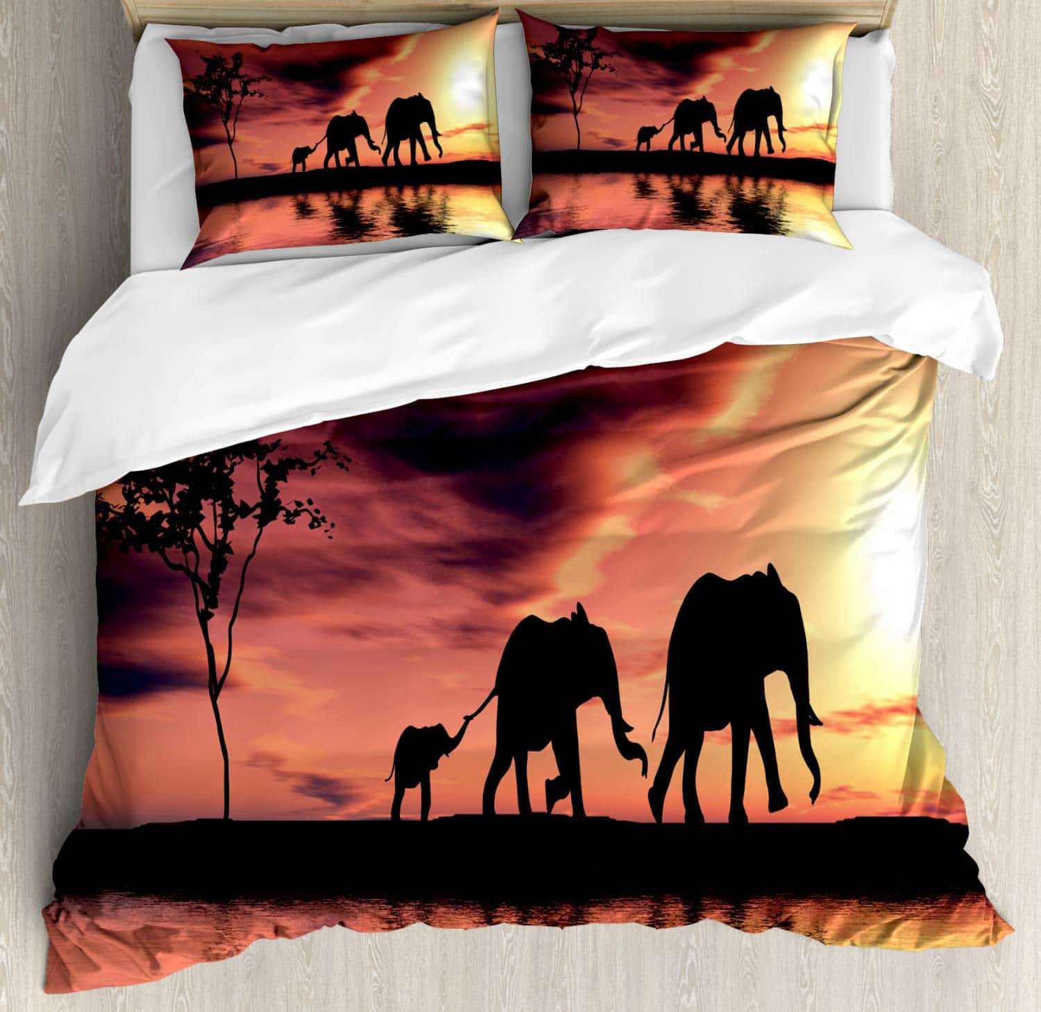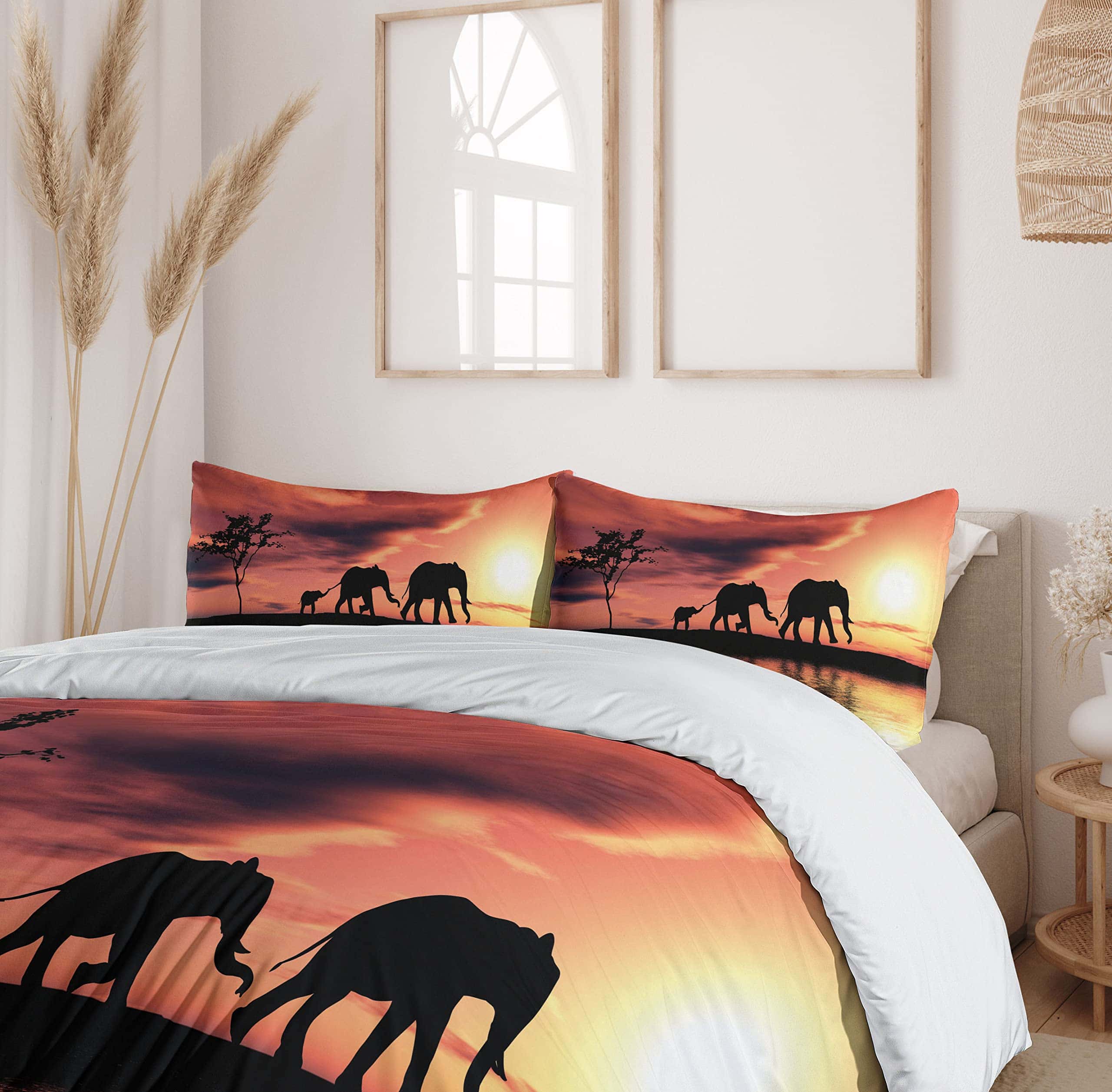 Set de Funda de Edredón Ambesonne, Siluetas de Familia de