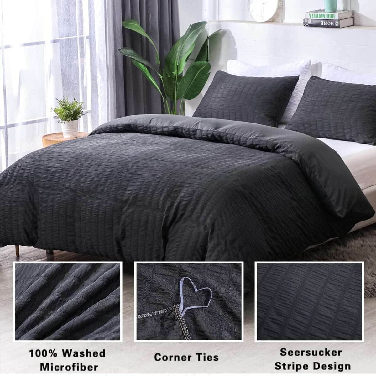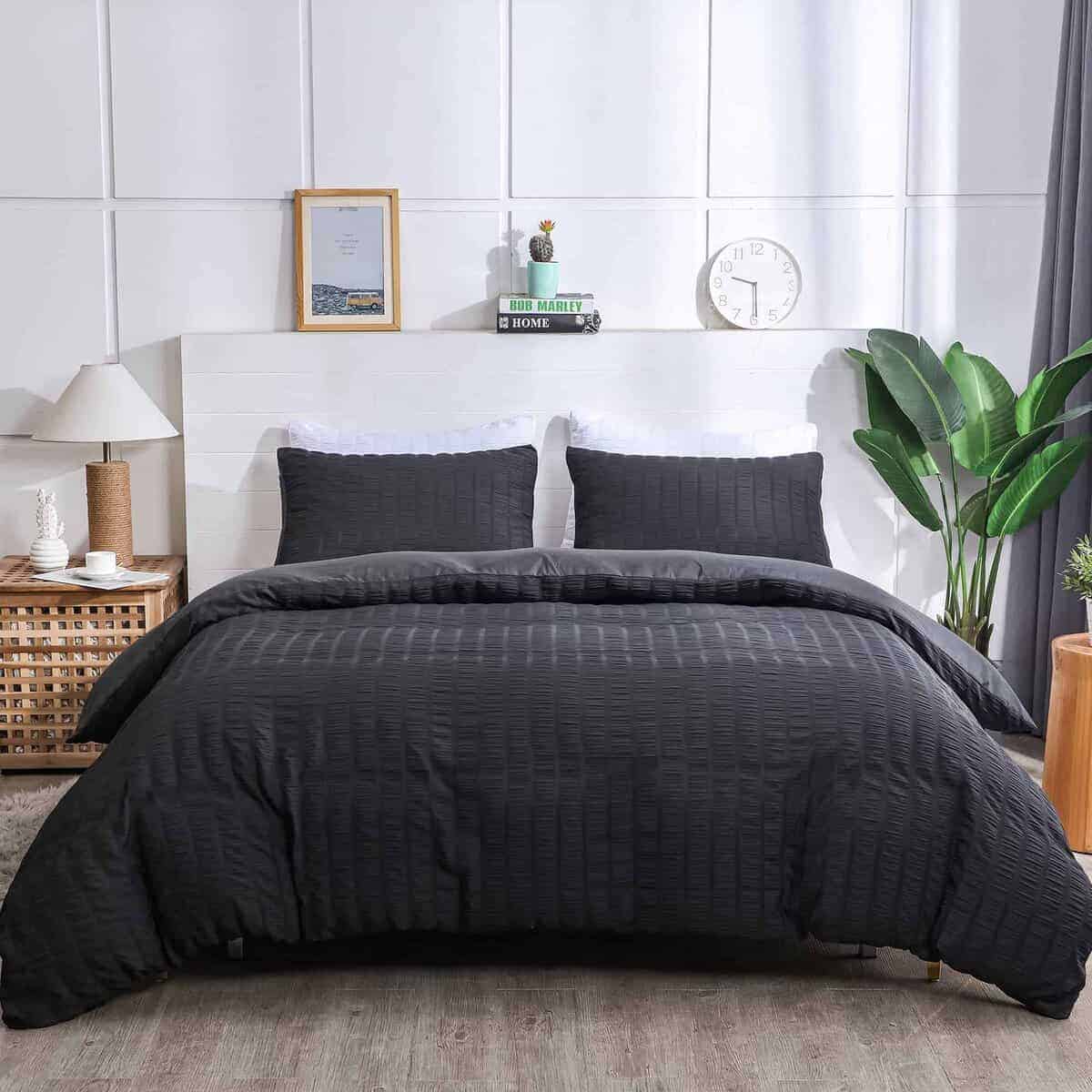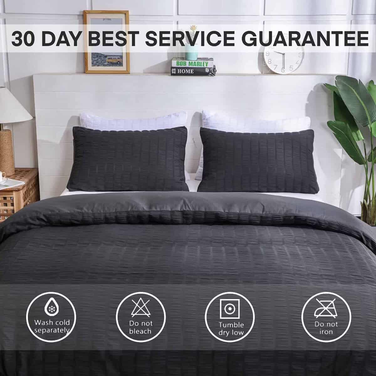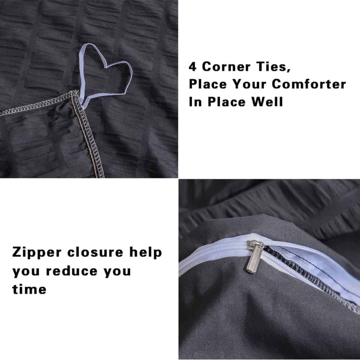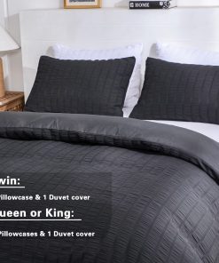 Are you tired of smooth, plain duvet covers without design sense? Now our designers have been studying for a long time and designed a seersucker fabric. This fabric has a layer of wrinkled seersucker which brings a unique sense of elegance. It feels soft and wrinkled. Compared to the other same solid color products, the seemingly irregular folds are embellished with the unique individuality and artistic sense of the duvet cover, which makes it look more beautiful. This seersucker fabric is made of high strength and thickened washed microfiber material, which is 40% more durable than ordinary materials and 20% heavier than ordinary fabrics. At the same time, this seersucker fabric will be more breathable and more comfortable than ordinary materials. In order to save you time in changing your duvet and comforter, we have adopted a more convenient metal zipper design; at the same time, our duvet covers have corner ties in the four corners, which can better keep your duvet or comforter from slipping. Available in twin duvet cover: 1 duvet cover set (66″x 90″) & 1 pillowcases (20″x 26″); Available in duvet cover queen: 1 duvet cover set (90″x 90″) & 2 pillowcases (20″x 26″); Available in duvet cover king: 1 duvet cover set (104″x 90″) & 2 pillow Cases (20″x 36″). Our seersucker duvet cover is machine washable with cold water on gentle cycle with similar colors. Please do not bleach and iron. It doesn’t attract your pet hair. Holding up to dog/cat paws and dog/cat hair brushes off easily.