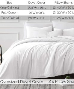 Este juego de funda de edredón king incluye una funda de edredón con cremallera de 108″x98″ para una cama tamaño king y dos fundas de almohada a juego de 20″x36″. El generoso tamaño del edredón garantiza una cabida completa mientras que la cremallera oculta y los cuatro lazos en las esquinas mantienen la funda de edredón segura en su lugar.