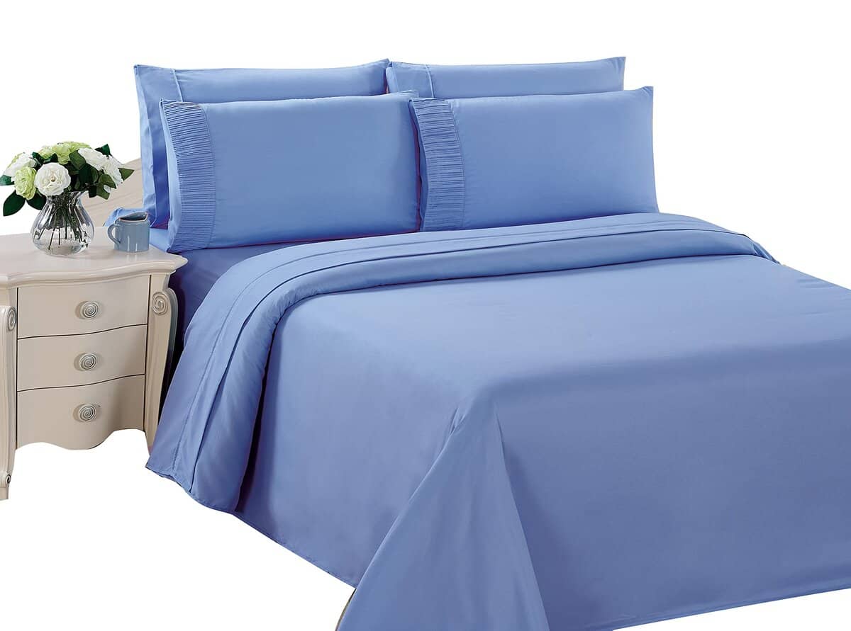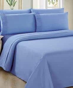 Este sencillo juego de sábanas de rizo decorativas pleatadas estilo hotel se puede combinar fácilmente con cualquier estilo, tanto de diseño tradicional como moderno. También complementa sin esfuerzo a los juegos de sábanas de satén estampadas, tejidas, colchas, mantas o edredones existentes. El diseño plisado en los extremos de las 2 fundas de almohada hace que el juego de sábanas de funda de edredón no sea solo simple, sino también clásico.