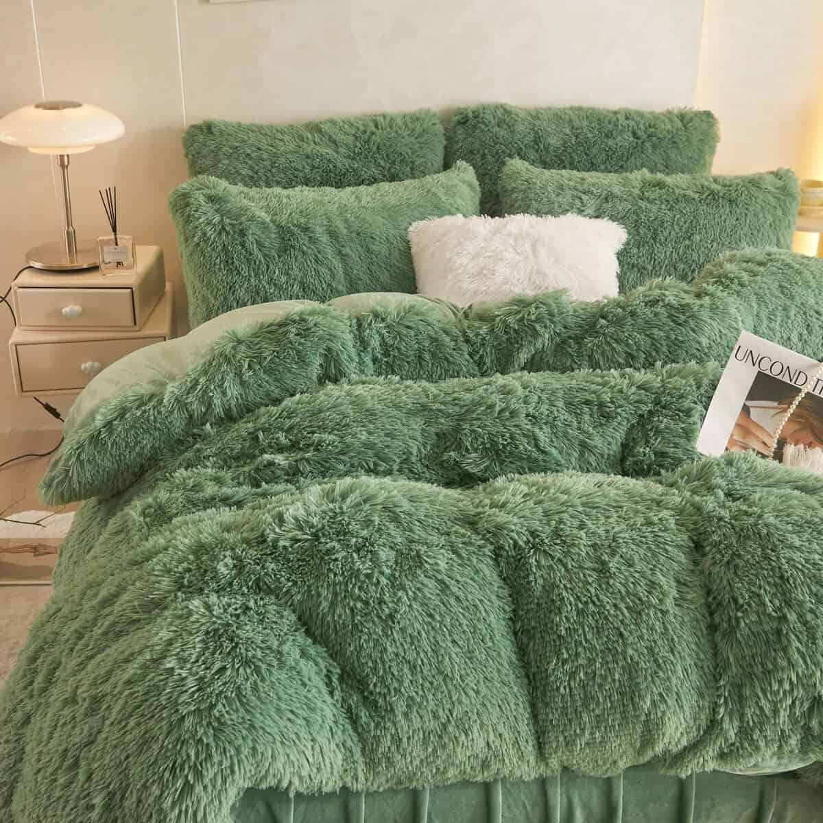 Set de Funda de Edredón de Piel Sintética Verde Salvia King