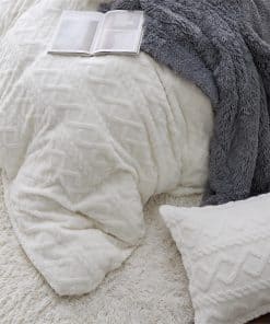 Este set de funda de edredón esponjosa de Bedsure es perfecto para darle un toque acogedor y elegante a tu dormitorio. Con una parte delantera extremadamente esponjosa y suave de tela Sherpa y una parte trasera de exquisito terciopelo, este juego de funda de edredón añade calidez y suavidad a tu cama. El diseño único de patrón cableado proporciona una sensación de profundidad, mientras que el cierre de cremallera hace que sea fácil de sellar tu edredón, ahorrándote tiempo al hacer la cama. Además, los lazos de esquina en el interior de la funda del edredón evitan que el relleno se amontone y te mantienen cómodo toda la noche. Ideal para cualquier espacio de dormitorio, este juego de funda de edredón se puede usar como una manta durante el verano y como un caparazón cálido en el invierno. Simplemente lave a máquina en agua tibia para mantener la suavidad y la esponjosidad. Con este juego de ropa de cama peluda, obtendrás una funda de edredón de tamaño Queen y 2 fundas de almohada para completar la apariencia de tu cama sin incluir el inserto o la colcha.