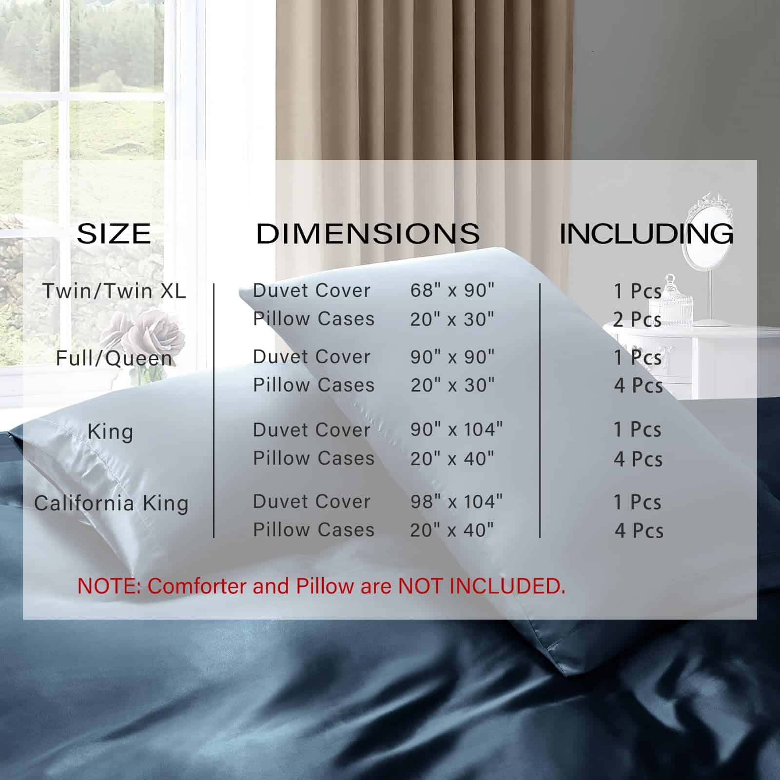 4 x Fundas de Almohada (20″ x 40″), 1 x Funda de Edredón Satinada (90″ x 104″)