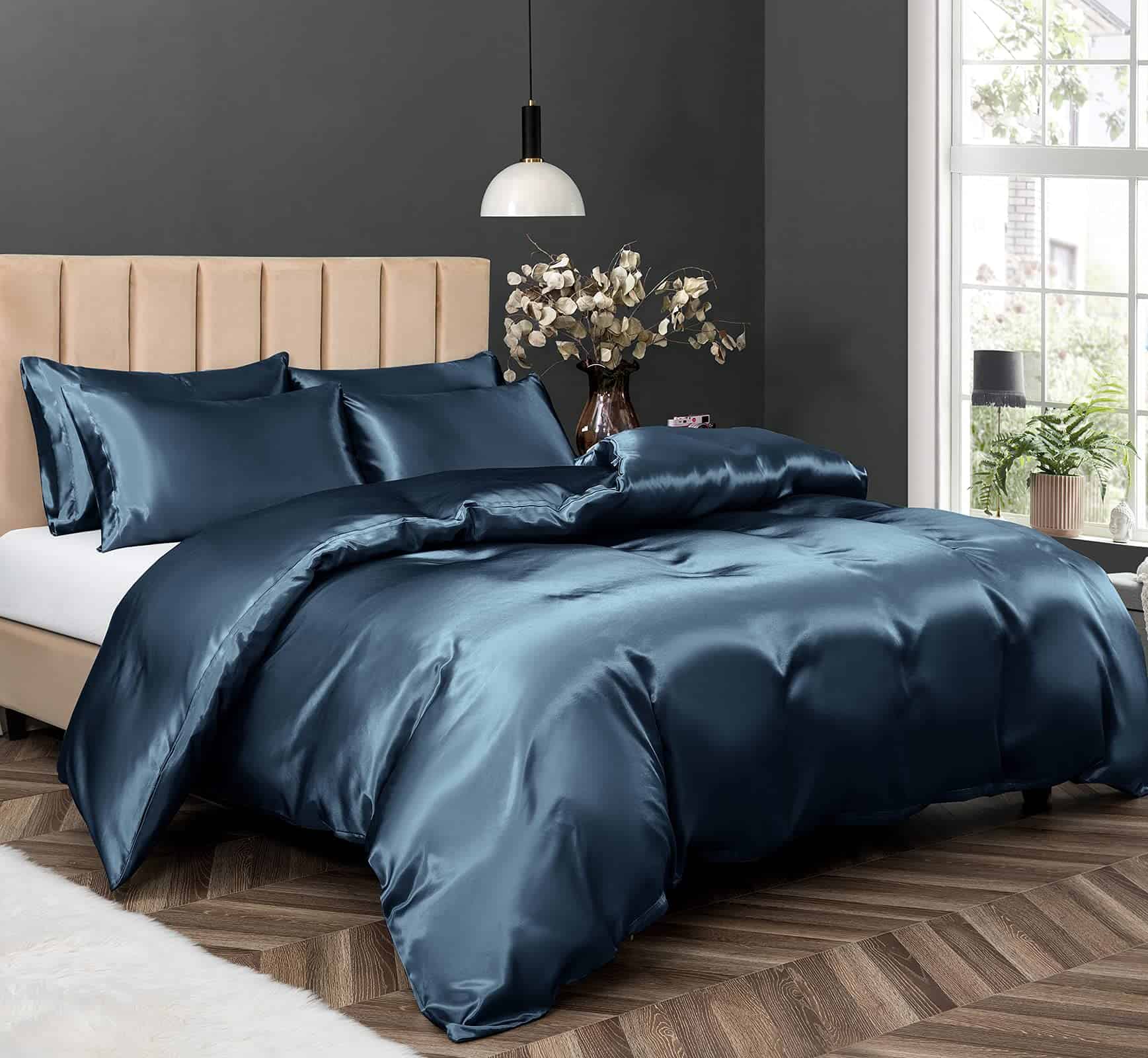 4 x Fundas de Almohada (20″ x 30″), 1 x Funda de Edredón Satinada (90″ x 90″)