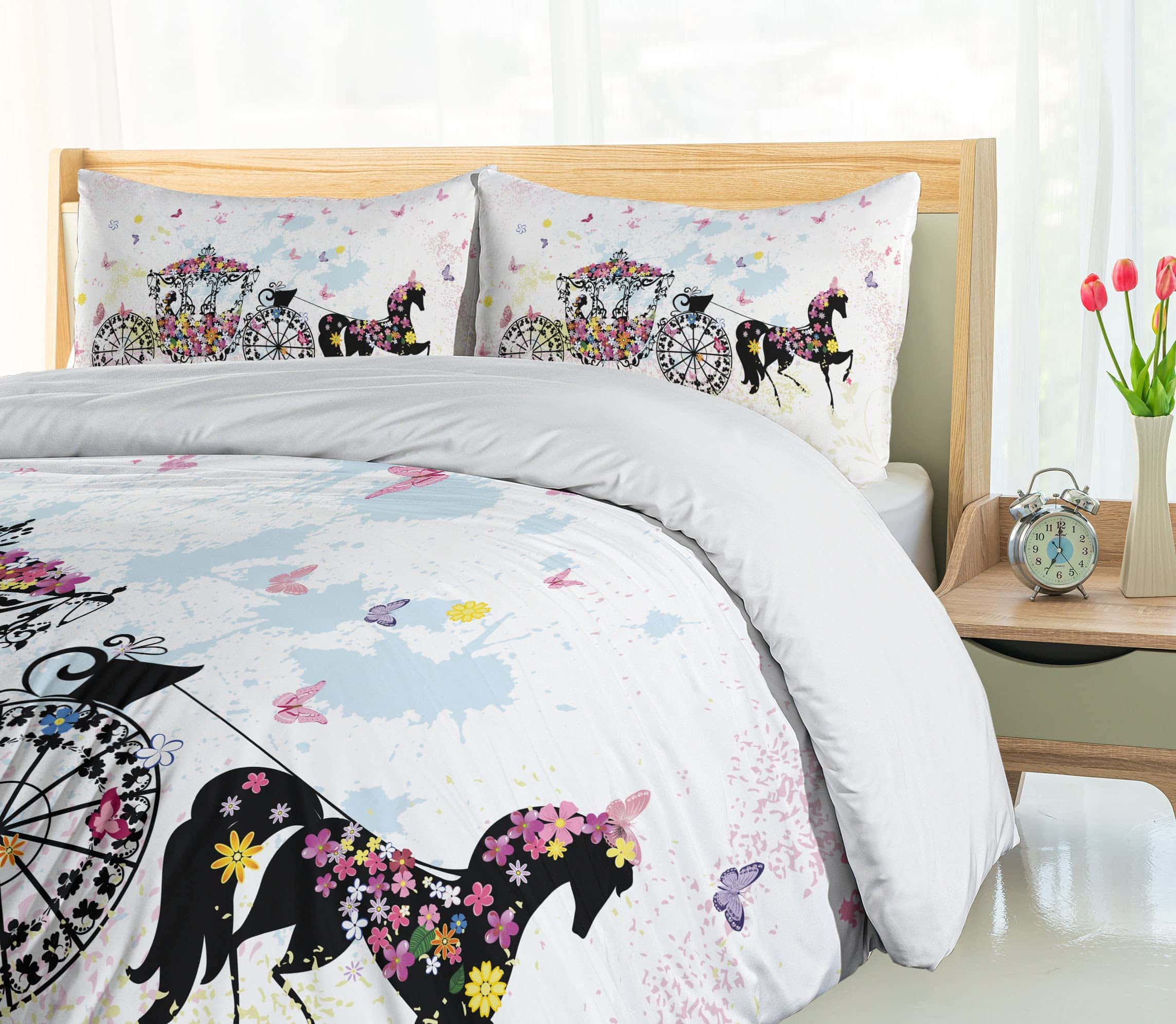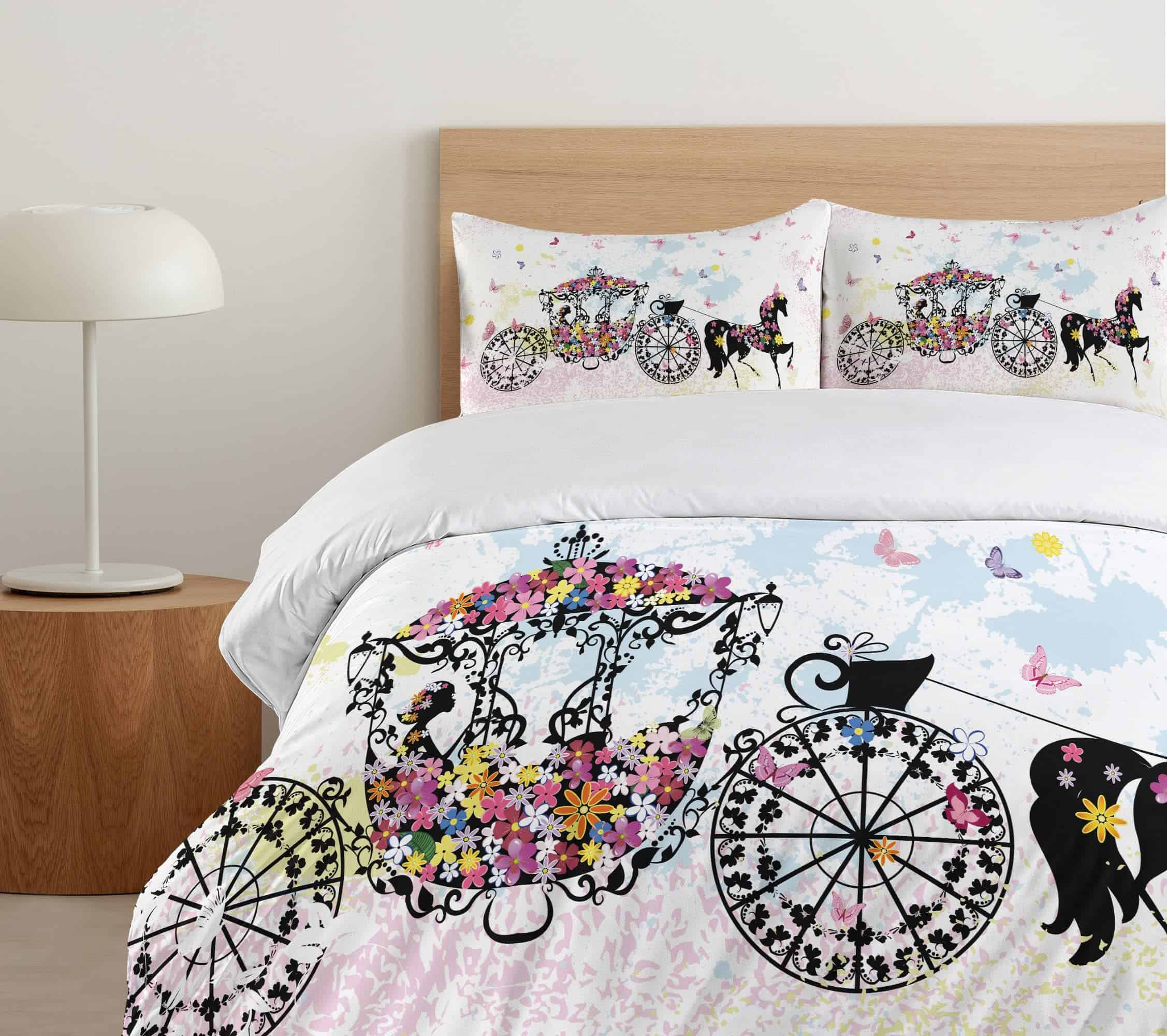 Set de Funda Nórdica Ambesonne Cartoon, Carroza de Flores