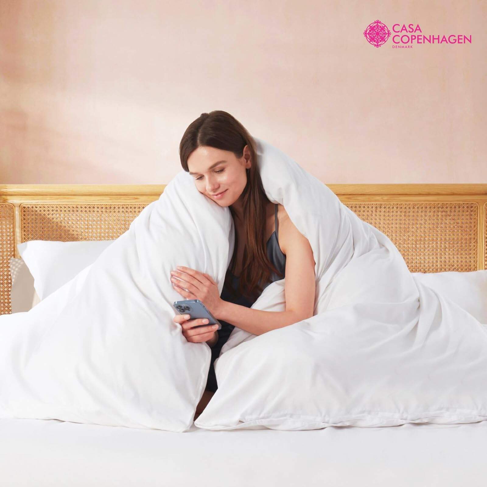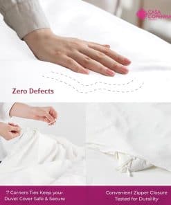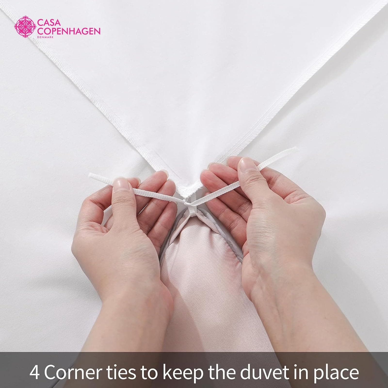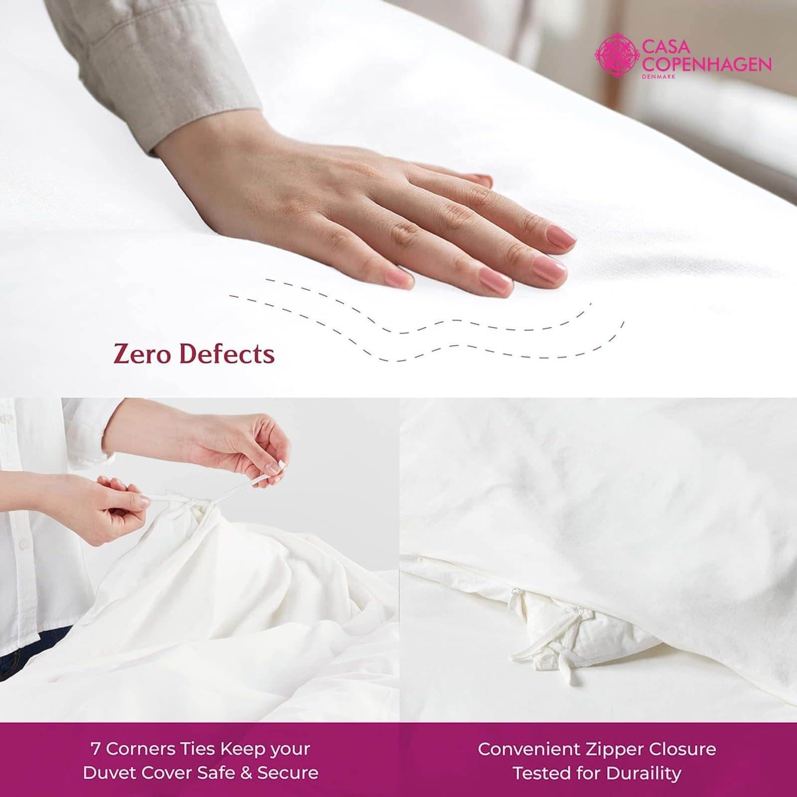 Hecho de lujoso algodón 100% peinado de fibra larga ultra suave, nuestra funda nórdica premium es ultra suave, silenciosa, transpirable y lujosa. Verdaderamente digna de una suite elegante y elegante y presente en hoteles de clase mundial. Excepcionalmente ligero y esponjoso, con aspecto de nube, te mantiene caliente durante los meses más fríos del invierno y cómodo durante los meses más cálidos. Las costuras de doble aguja tienen costuras más fuertes. El elegante ribete y ribete en las costuras de doble aguja añade durabilidad al borde de la funda, que suele ser la zona de mayor desgaste y evita las fugas. Cada pieza de ropa de cama de lujo se fabrica en una fábrica de última generación y se inspecciona a mano para asegurar que esté impecable. Este set de funda nórdica de alta calidad es el centro de atención perfecto para habitaciones de invitados, dormitorios principales, lofts, apartamentos y más allá. Recuéstate y disfruta de un sueño perfectamente reparador en ropa de cama ultra cómoda que también se ve increíble.