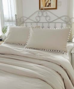 Actualiza tu dormitorio con este elegante juego de funda nórdica de algodón lavado de 3 piezas, que incluye una funda nórdica y dos fundas de almohada. Hecho de algodón lavado premium, este juego de ropa de cama ofrece una comodidad y transpirabilidad superiores, garantizando una noche de sueño reparador. El elegante color beige, complementado con delicados adornos de pompones, añade un toque de sofisticación y comodidad a tu decoración. La funda nórdica viene con un cierre de cremallera seguro, lo que facilita insertar y quitar tu edredón. Perfecto para todas las estaciones, este juego de ropa de cama combina estilo y funcionalidad para mejorar tu experiencia de sueño. Ideal para uso personal o como regalo, este juego de ropa de cama es una elección perfecta. Nuestra Tienda: Alta calidad de vida, no deberías haberlo rechazado, lo mismo es cierto para una maravillosa noche. Información sobre tamaños: Tamaño Twin Incluye: 1 Funda nórdica 68 x 88 pulgadas, 2 Fundas de almohada 20×30 pulgadas. Tamaño Twin XL Incluye: 1 Funda nórdica 69 x 92 pulgadas, 2 Fundas de almohada 20×30 pulgadas. Tamaño Full Incluye: 1 Funda nórdica 78 x 86 pulgadas, 2 Fundas de almohada 20×30 pulgadas. Tamaño Queen Incluye: 1 Funda nórdica 88 x 88 pulgadas, 2 Fundas de almohada 20 x 30 pulgadas. Tamaño King Incluye: 1 Funda nórdica 106 x 92 pulgadas, 2 Fundas de almohada 20 x 36 pulgadas. Tamaño California King Incluye: 1 Funda nórdica 104 x 98 pulgadas, 2 Fundas de almohada 20 x 36 pulgadas. Paquete Incluye: 1 Funda nórdica (sin edredón) 2 Fundas de almohada (Sin relleno). Garantía: Prometemos 100% de devolución de dinero por cualquier problema de calidad del producto. Juego de Ropa de Cama Softta 100% Algodón, después de un proceso especial de lavado, hace que el tejido sea más suave y cómodo. El mejor regalo para tus amigos y a quienes amas~