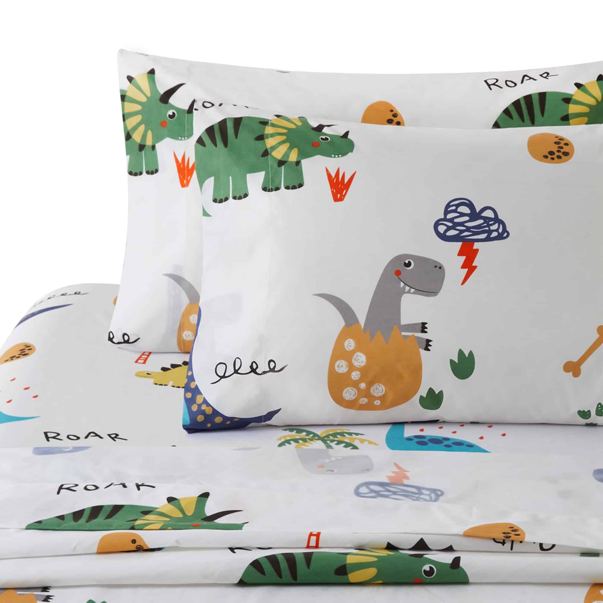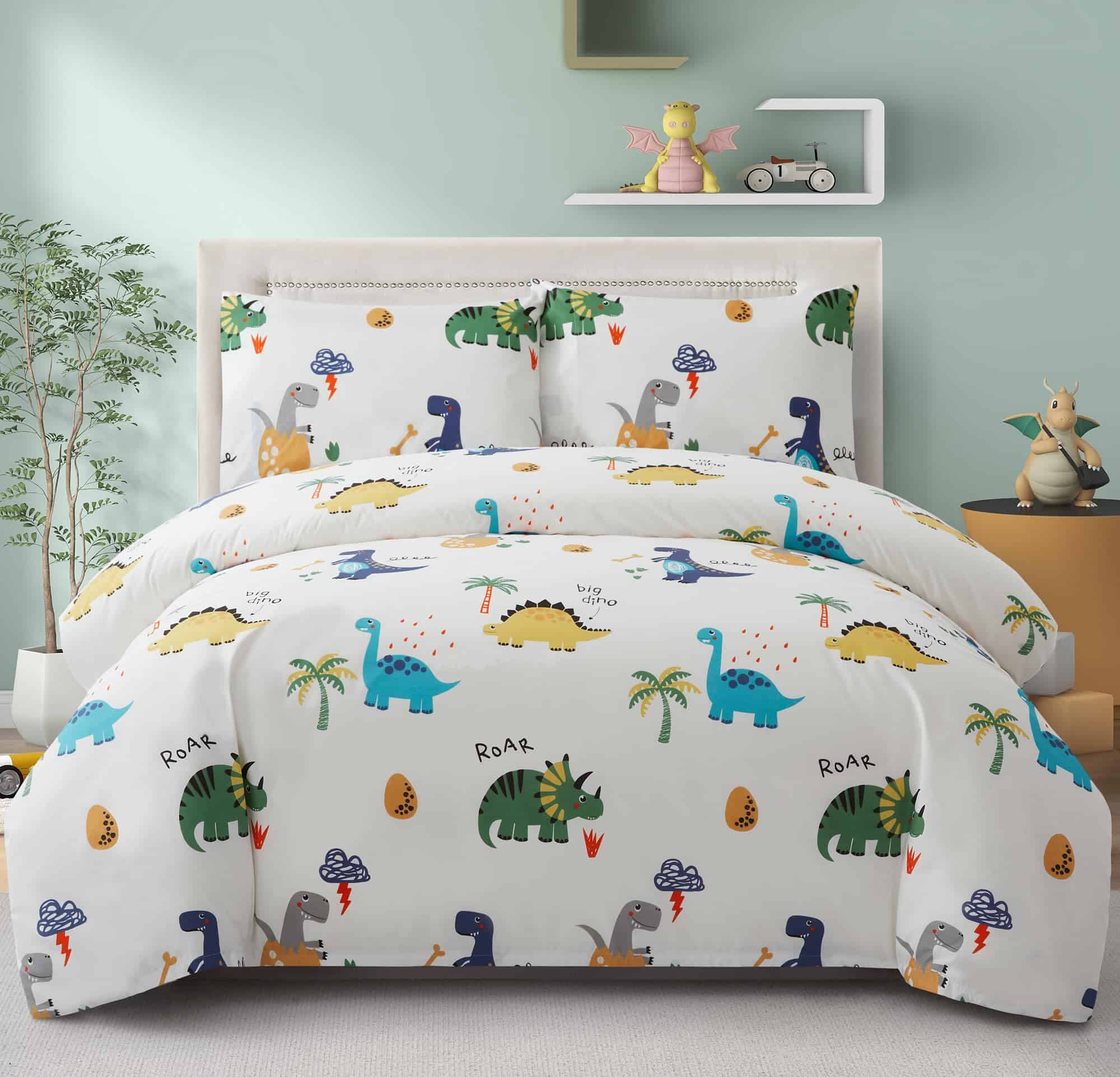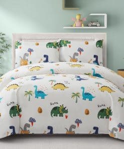 Este Set de Funda Nórdica de 3 Piezas es la Elección Perfecta para un Dormitorio Infantil. Las Impresiones de Dinosaurios en Colores Vibrantes y los Elementos Divertidos lo Hacen Ideal para Un Ambiente de Juego. La Mezcla de Algodón y Poliéster Garantiza una Sensación Suave y Duradera, Mientras que la Cuenta de Hilos de 600 Asegura una Calidad de Hotel para un Descanso de Calidad. La Cremallera Oculta y las Corbatas en las Esquinas Aseguran que el Edredón se Mantenga en su Lugar y se Vea Inmaculado. Fácil de Cuidar y con una Gran Atención al Detalle, Este Set de Funda Nórdica será un Favorito Instantáneo en Cualquier Dormitorio Infantil.