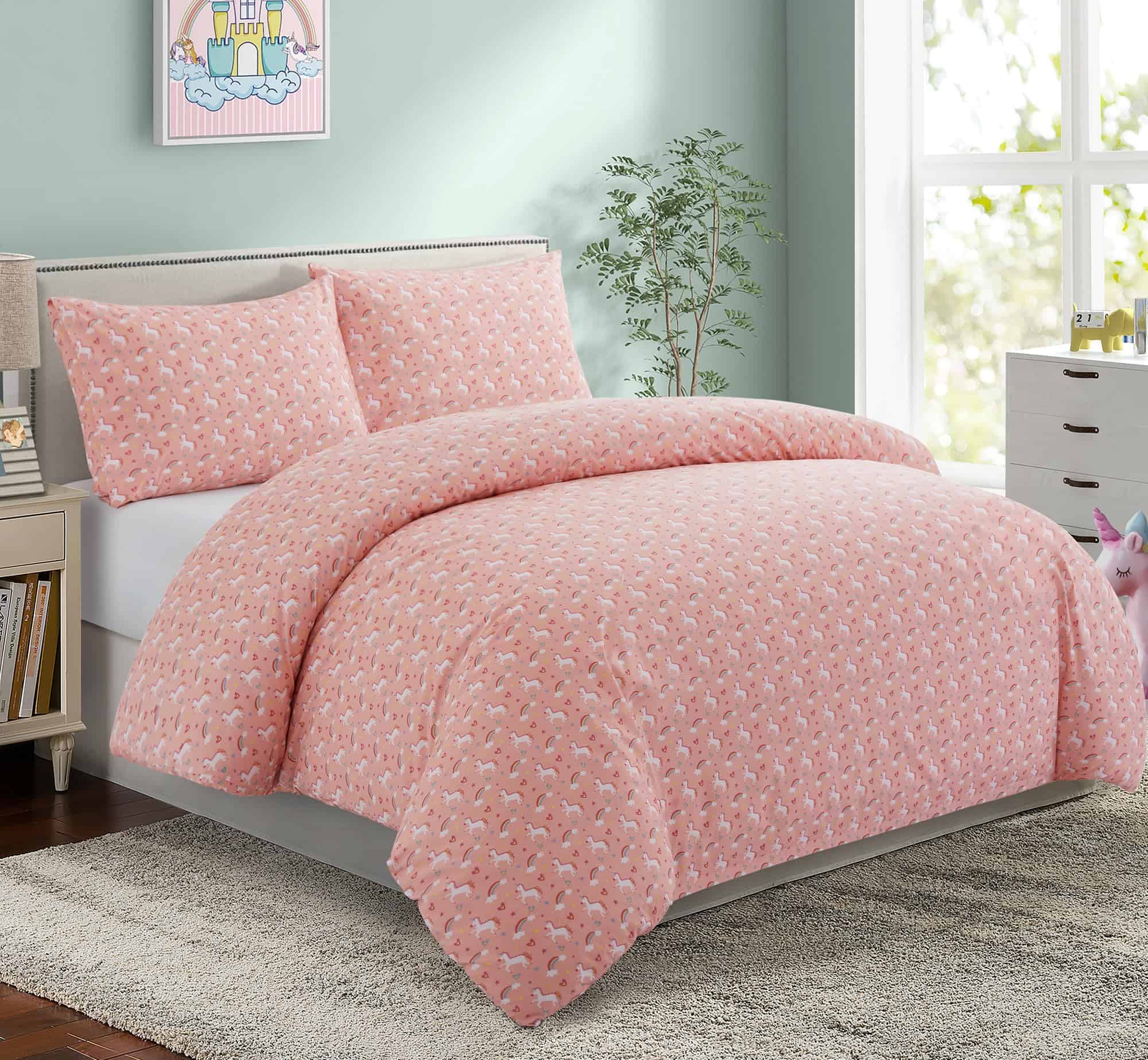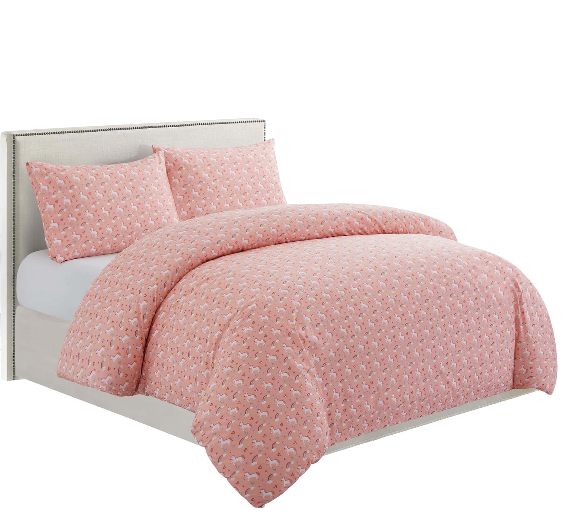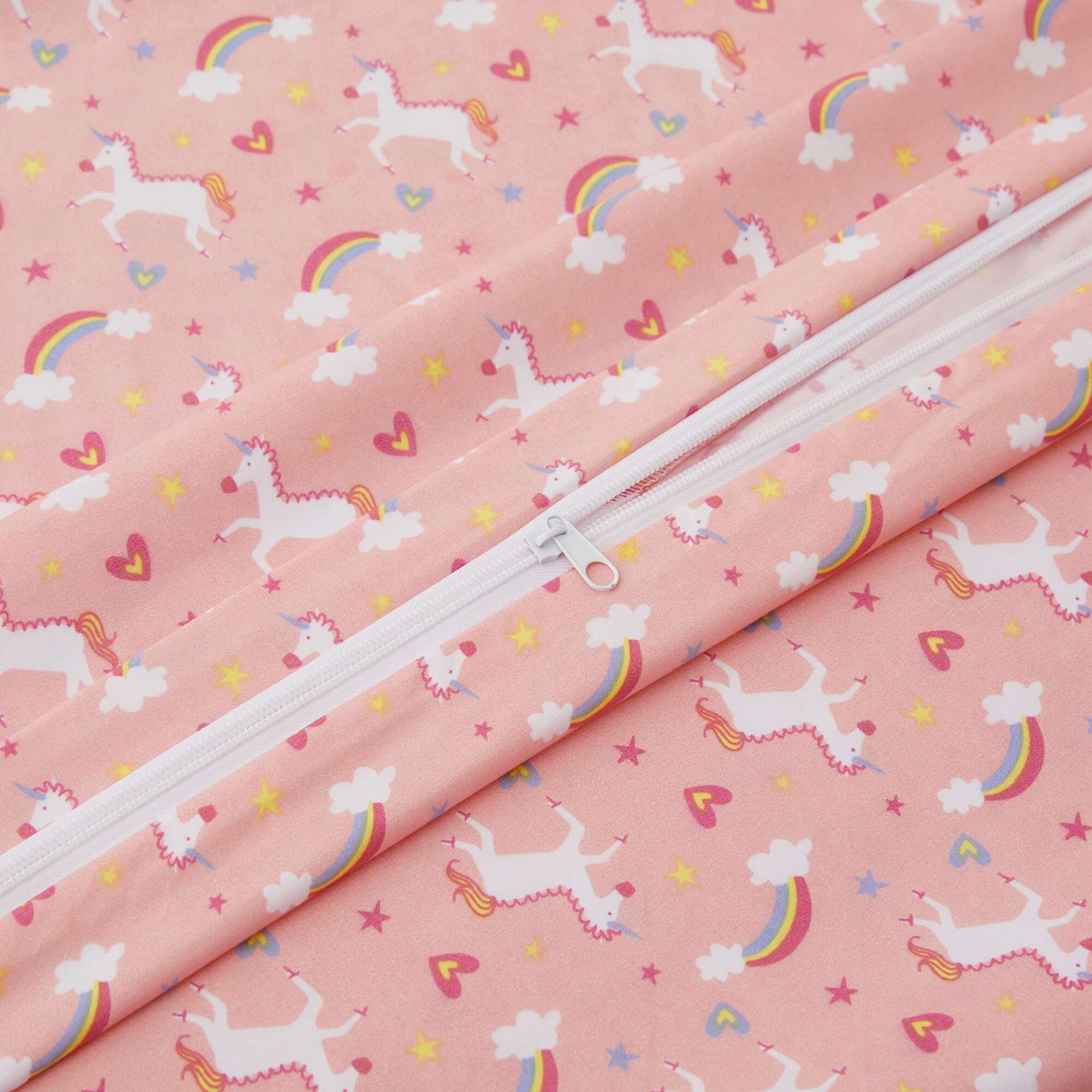 55% algodón y 45% poliéster. El set de funda nórdica para niños incluye una funda nórdica de 88 x 92 pulgadas y 2 fundas de almohada impresas de 21 x 32 pulgadas. El diseño moderno incluye patrones de unicornio lindos, arcoíris coloridos, estrellas y corazones con una base rosa. Diseño impreso a juego en la funda de almohada. Perfecto para habitaciones infantiles, habitaciones de invitados, pijamadas, habitaciones infantiles, casas de vacaciones, habitaciones infantiles y dormitorios universitarios. Mezcla de algodón de 600 hilos. Material suave y duradero hecho con algodón de fibra larga para mayor lujo y durabilidad. Cremallera oculta en la parte inferior y amplia abertura con cremallera para facilitar la inserción y extracción de la funda nórdica o el edredón. Los lazos en cada esquina mantienen la funda nórdica en su lugar y evitan que se mueva. Resistente a las arrugas, prelavado, resistente a la decoloración y transpirable. Se puede lavar a máquina con agua fría y secar a baja temperatura. Excelente idea de regalo para niños, adolescentes, estudiantes universitarios, miembros de la familia y amigos. También es un regalo popular para cualquier día festivo, Navidad, inauguraciones, cumpleaños y ocasiones especiales