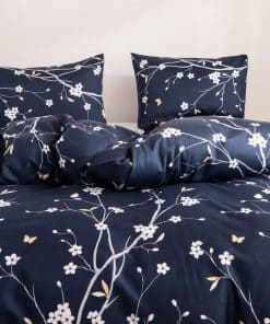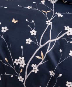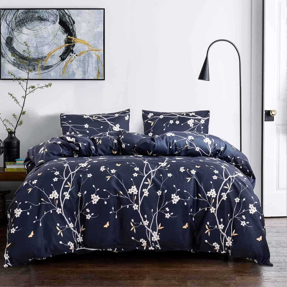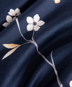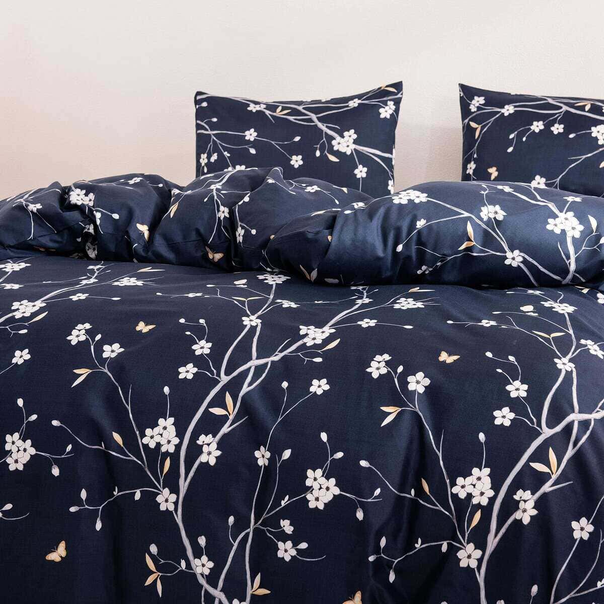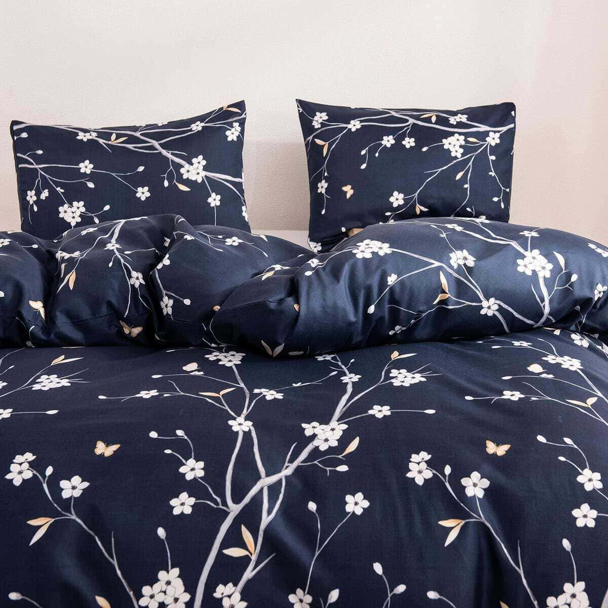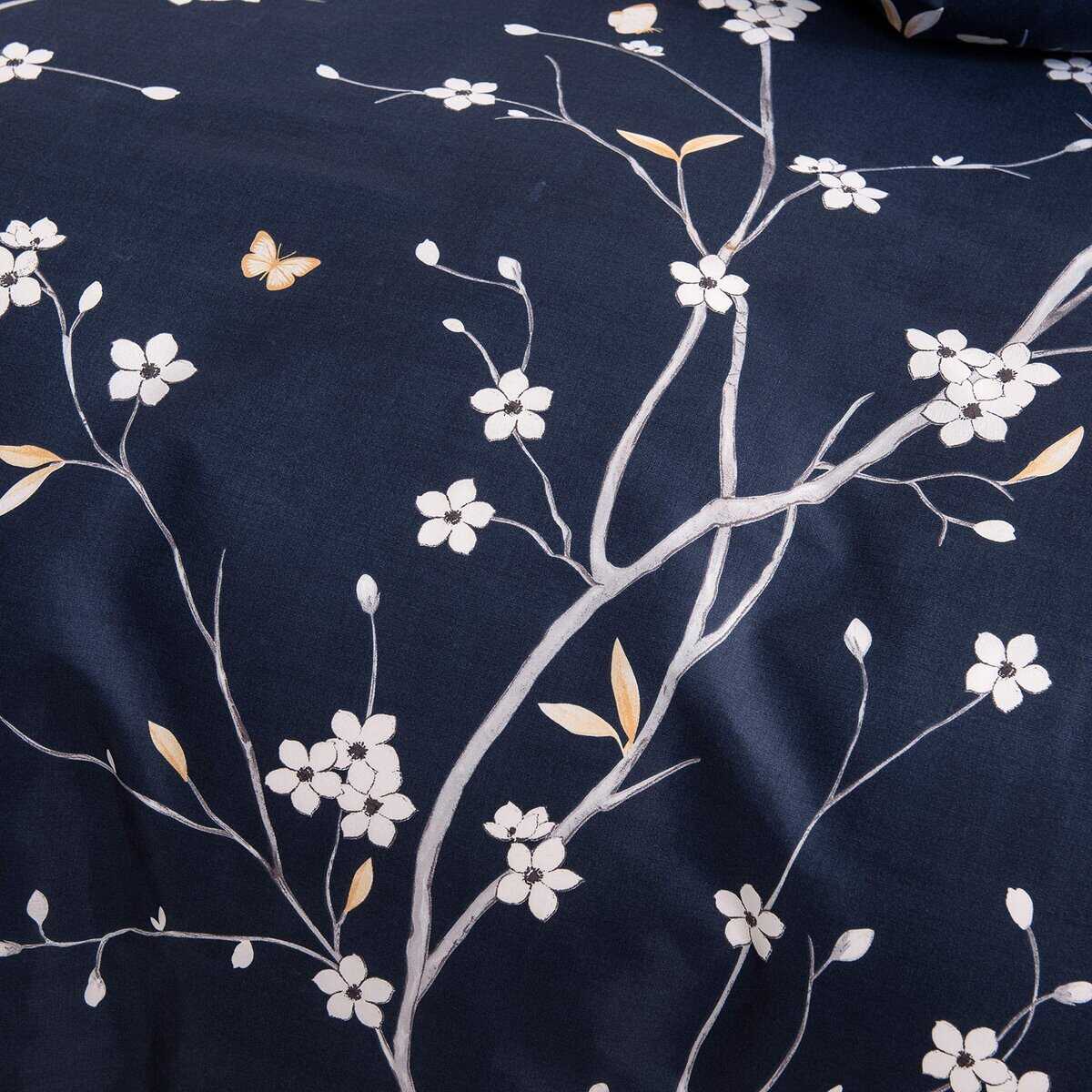 3. DISEÑO ESPECIAL de Funda Nórdica Floral Blanca: Set de funda nórdica flor de ciruela, juego de edredón flor de ciruela, flores blancas impresas en el set de funda nórdica azul marino, aportan diversión a un simple set de funda nórdica de color sólido, set de edredón floral king, set de funda nórdica king para niños.