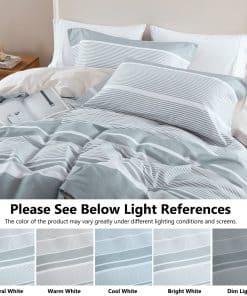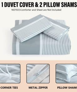 1. 100% ALGODÓN Funda nórdica king está hecha de tela 100% algodón que es antiestática y antialérgica. Certificado independientemente con la certificación OEKO-TEX Standard 100. Nuestras fundas nórdicas tamaño king gris están garantizadas de estar libres de sustancias dañinas. 2. DISEÑO ÚNICO Las rayas grises son un diseño clásico atemporal que aporta un aspecto elegante y sofisticado al dormitorio, siendo un color neutral que lo convierte en una opción popular para parejas o familias que comparten habitación. 3. CIERRE DE CREMALLERA La funda nórdica king cuenta con una cremallera oculta que oculta bien la cremallera, ahorrando tiempo al abrir y cerrar y asegurando que el nórdico no quede expuesto. 4. 8 LAZOS EN LAS ESQUINAS Ocho lazos en la funda nórdica king mantienen el nórdico en su lugar para que permanezca plano y no se salga del nórdico. 5. JUEGO INCLUYE El juego de funda nórdica king incluye 1 funda nórdica (90″ x 104″) y 2 fundas de almohada (20″ x 36″). (Nórdico y relleno de almohada no incluidos)