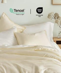 Disfruta de la frescura durante todo el año con nuestro juego de funda nórdica TENCEL, expertamente tejido para mantener la regulación térmica natural de tu cuerpo. Las propiedades transpirables y que absorben la humedad de la tela natural crean un entorno de sueño fresco y confortable. Experimenta el equilibrio perfecto entre transpirabilidad, suavidad y durabilidad para un uso durante todo el año y una noche de descanso sin igual. Abraza la comodidad consciente con nuestro TENCEL Lyocell sosteniblemente obtenido, un tejido Carbon Zero proveniente de árboles de eucalipto. Cada noche de sueño se convierte en un paso hacia un futuro más verde. Incluye una funda nórdica (104»x90») y dos fundas de almohada (20»x36»). Las fundas de almohada y la funda nórdica cuentan con costuras dobles de alta calidad para una durabilidad perdurable. La funda nórdica con lazos presenta cuatro lazos que sujetan de forma segura el edredón de tu elección, junto con un cierre de botón para un look impecable. Lavable a máquina y apto para secadora. Experimenta fundas nórdicas que mantienen su vibrante color, resistiendo la decoloración, la contracción o la formación de bolas con el tiempo. Disfruta de su suavidad lujosa y sus colores duraderos que permanecen intactos lavado tras lavado, indulgiéndote en años de confort y lujo incomparable. Date a ti mismo o a un ser querido el regalo definitivo de belleza y ropa de cama de fácil cuidado.