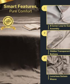 1. JUEGO DE ROPA DE CAMA DE LUJO: Transforma tu dormitorio con nuestro juego de funda nórdica 100% Tencel de Eucalipto Vegano Austriaco, que incluye 2 fundas de almohada (21″ x 31″) y una funda nórdica queen extra grande (90 X 94 ). Esta solución completa de ropa de cama de lujo está diseñada para tu cama queen, asegurando un aspecto cohesivo y elegante. 2. SUAVE COMO LA SEDA FUNDA NÓRDICA COOLING: Experimenta el máximo confort con nuestro Juego de Funda Nórdica de Seda de Eucalipto Vegano, elaborado con lujosas fibras de Lyocell. Esta funda nórdica de Tencel queen está diseñada para proporcionar un tacto sedoso durante todo el año. Con una capacidad de absorción de la humedad y suavidad superiores, el Tencel supera a otros, lo que lo hace ideal tanto para personas calurosas como para aquellos que buscan un confort opulento. ¡Disfruta de una experiencia de sueño lujosa y refrescante como ninguna otra! 3. LAZOS EN LAS ESQUINAS Y BOTONES OCULTOS PARA UN AJUSTE SEGURO: ¡Elimina la molestia de los insertos que se desplazan con nuestro juego de funda nórdica de eucalipto ligero! Diseñado con 8 lazos en las esquinas y botones ocultos discretos, esta lujosa característica asegura que tu funda nórdica permanezca perfectamente en su lugar, brindándote una experiencia de ropa de cama ordenada y elegante. 4. AMIGABLE CON LA PIEL: Ideal para pieles sensibles o propensas al acné, nuestro juego de funda nórdica de Tencel de Eucalipto ofrece un tacto calmante. A diferencia de los materiales tradicionales que pueden atrapar el sudor y la suciedad, nuestra suave tela de Lyocell garantiza un sueño cómodo y libre de irritaciones. ¡Despierta cada mañana con la piel radiante y renovada! 5. OBTENIDO DE MANERA RESPONSABLE: Descansa tranquilo sabiendo que nuestro Tencel de Eucalipto Lyocell está certificado por OEKO-TEX 100, asegurando que está libre de sustancias nocivas. Cumpliendo con las normas ISO y obtenido de bosques responsables según las directrices de FSC, este juego de funda nórdica garantiza tu bienestar.