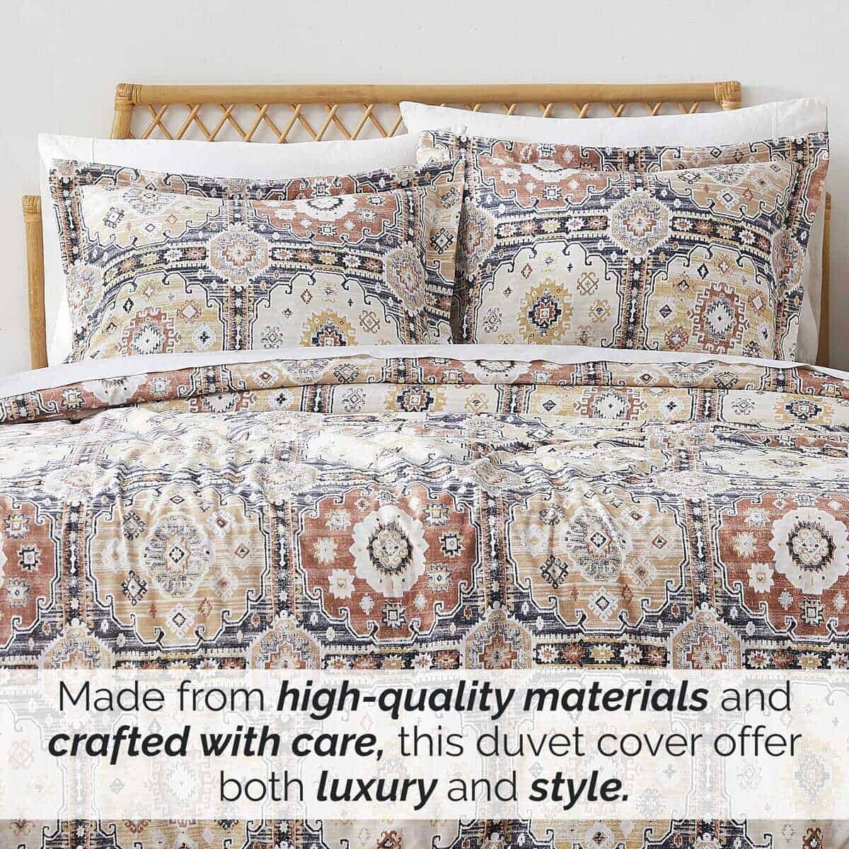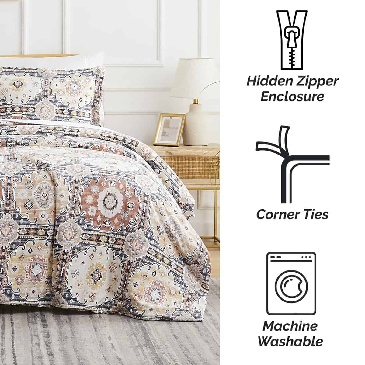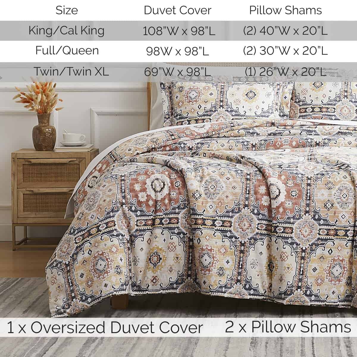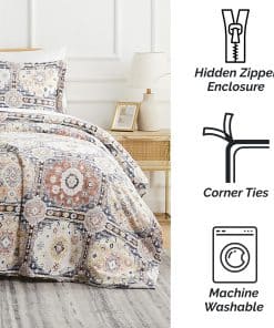 4. QUÉ INCLUYE: Una Funda Nórdica Queen Oversized 98″x98″ y 2 Fundas de Almohada 20″x26″. Esta colcha queen garantiza una cobertura completa y comodidad con una cremallera oculta y cuatro lazos en las esquinas para mantener tu inserto seguro en su lugar para un sueño reparador.