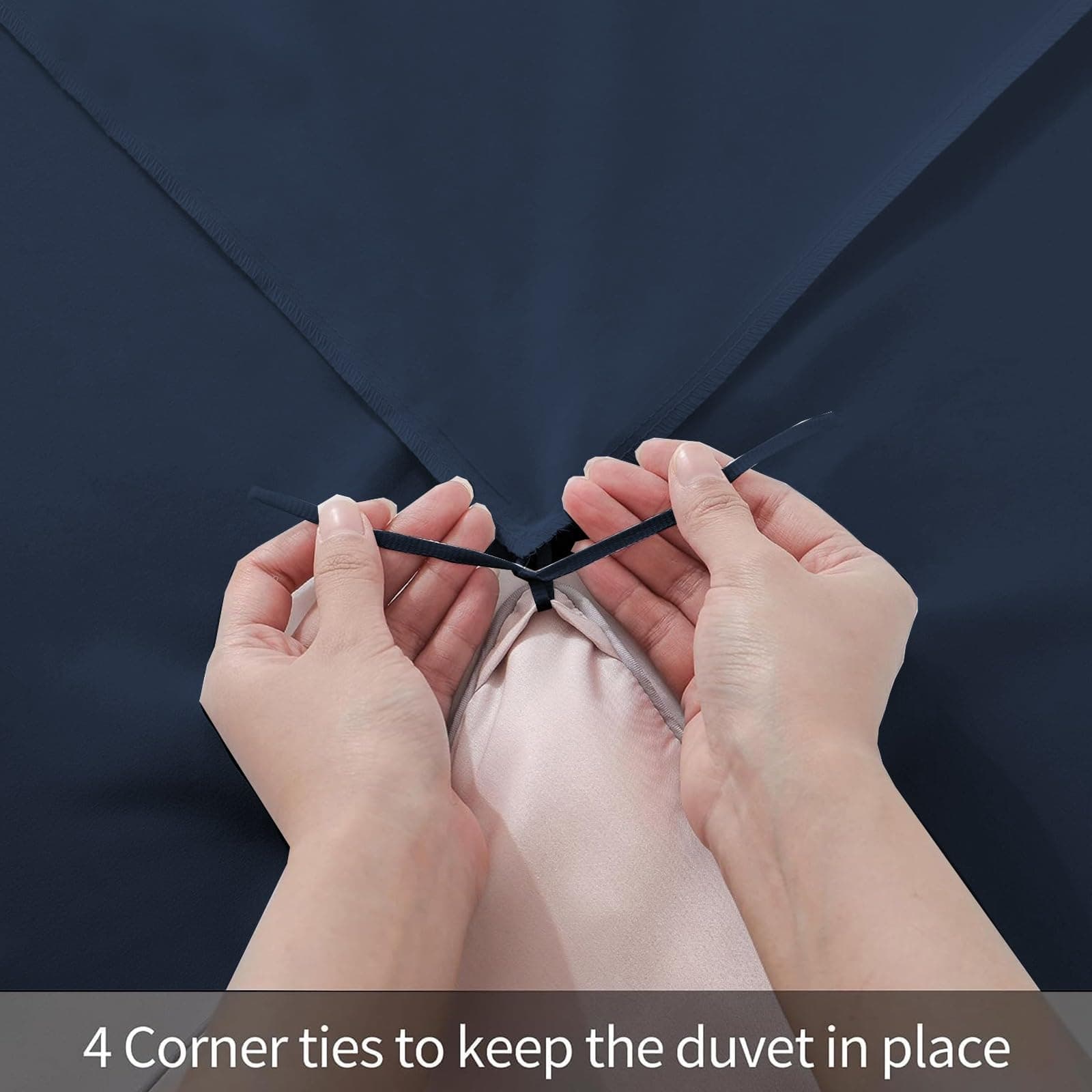 Hecho de lujoso algodón 100% ultra suave de fibra larga, nuestra funda nórdica premium es ultra suave, silenciosa, transpirable y lujosa. Verdaderamente digno de una elegante suite de clase y presente en hoteles de clase mundial. Excepcionalmente ligero y esponjoso, como una nube, te mantiene abrigado durante los meses más fríos y cómodo durante los más cálidos. Las costuras de doble aguja tienen costuras más fuertes. El elegante ribete y el cordón en las costuras de doble aguja añaden durabilidad al borde de la funda, que es la zona de mayor desgaste y evita fugas. Cada pieza de ropa de cama de lujo se fabrica en una fábrica de última generación e se inspecciona a mano para garantizar que esté impecable. Este set de funda nórdica de primera categoría es el centro perfecto para habitaciones de invitados, dormitorios principales, buhardillas, apartamentos y más allá. Recuéstate y disfruta de un sueño perfectamente reparador en ropa de cama ultra cómoda que también se ve increíble.
