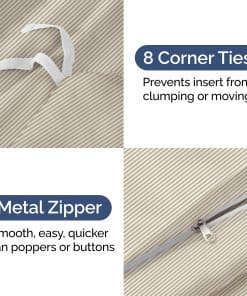 4. FÁCIL CUIDADO – CIERRE DE CREMALLERA Y LAZOS: Diseñados para un cuidado sin complicaciones, nuestras fundas nórdicas y fundas de almohada de calidad hotelera se mantienen en excelente estado sin el esfuerzo adicional, lo que las hace ideales para hogares ocupados. Cuenta con 8 lazos y un cierre de cremallera para garantizar un ajuste ceñido y un mantenimiento sin complicaciones.