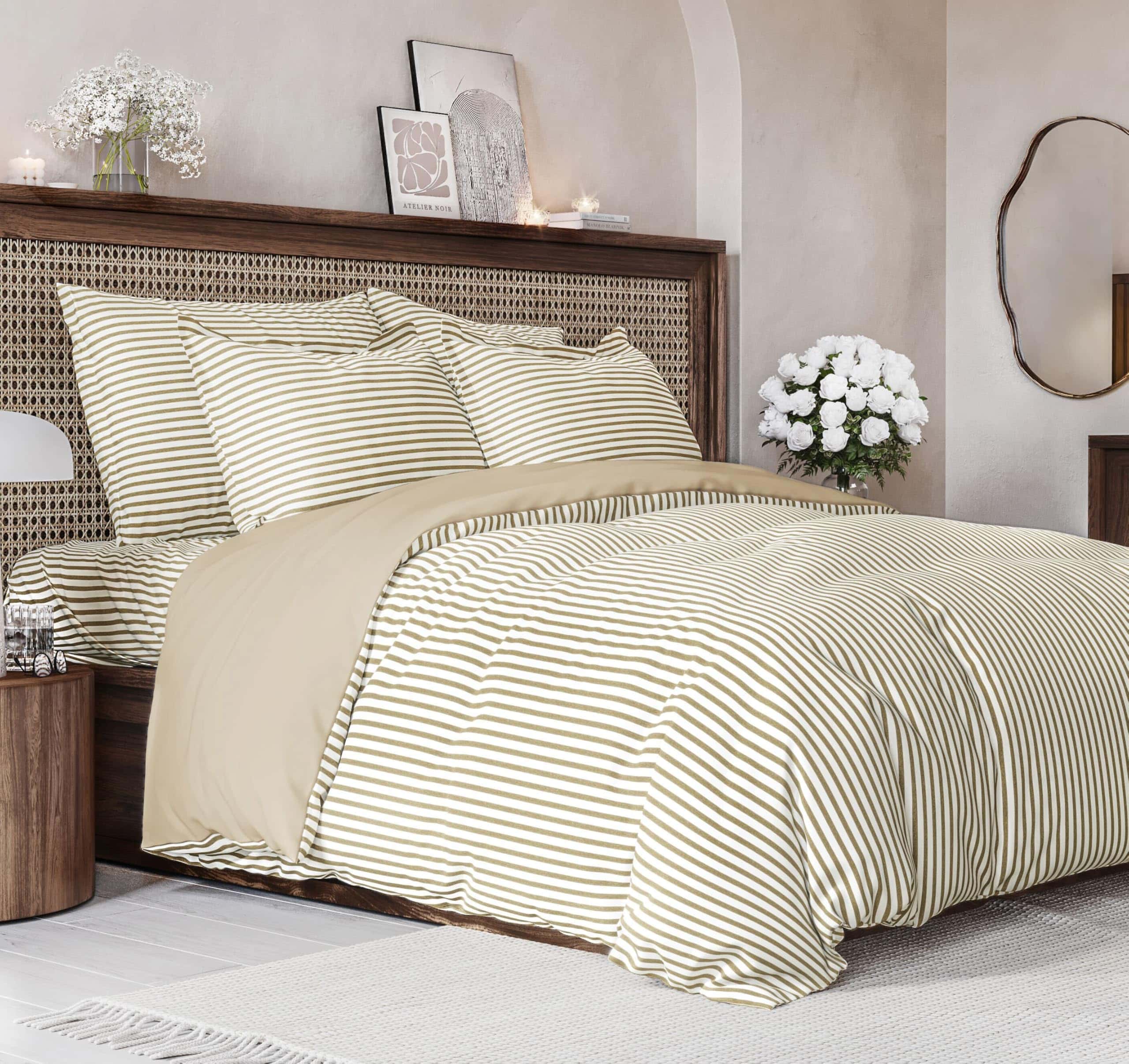 Set de Funda Nórdica Tamaño King Cal – Extra -Rayas Beige