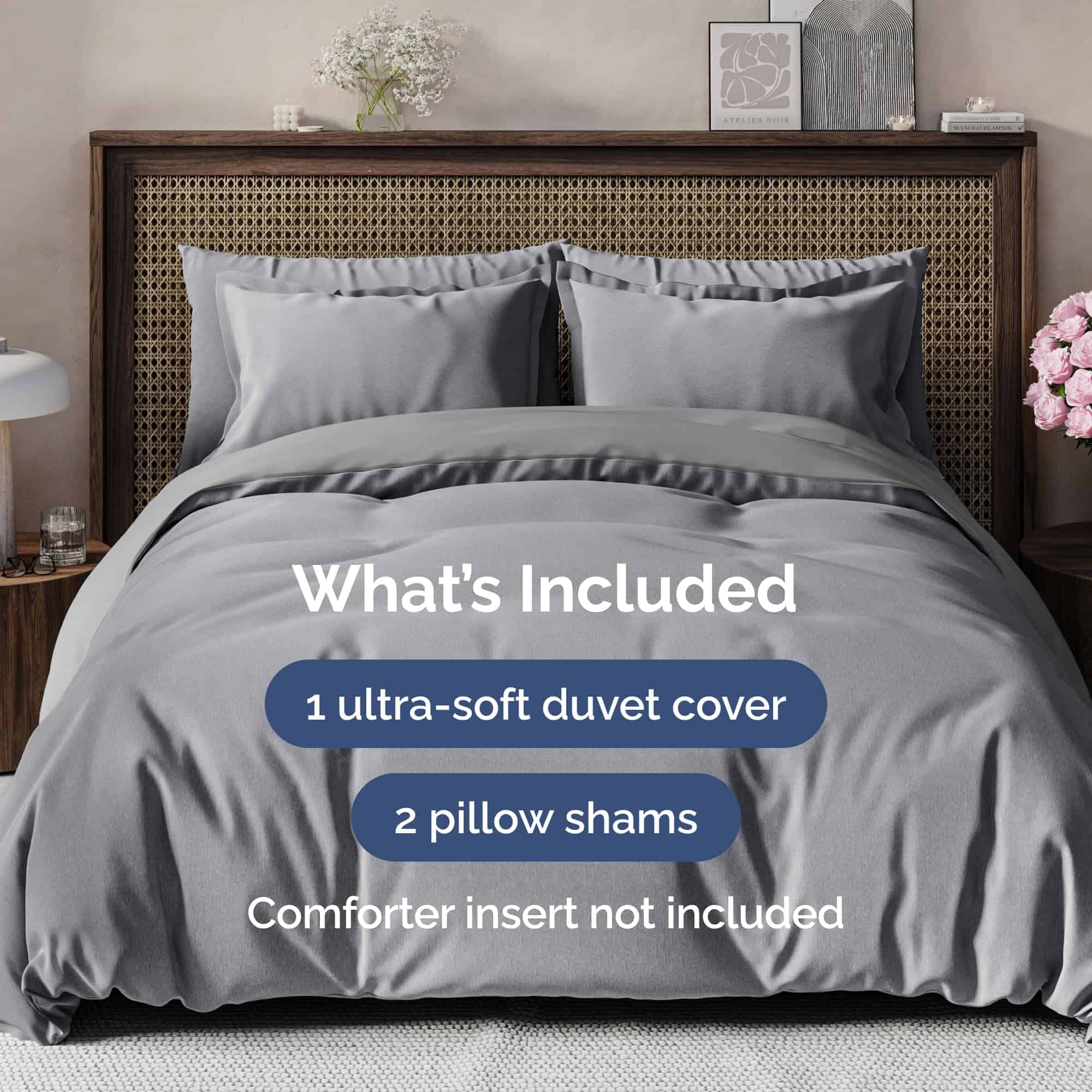 1. JUEGO DE FUNDA NÓRDICA TAMAÑO KING DE 3 PIEZAS: Transforma tu dormitorio con nuestro juego ultra suave de funda nórdica tamaño King de 104 x 90 pulgadas completo con (2) fundas de almohada de 20 x 36 pulgadas. Diseñado para un confort máximo, este elegante juego es lujoso, cómodo y muy acogedor; disfruta de la máxima experiencia de sueño con nuestro juego de funda nórdica tamaño King. ¡El edredón NO está incluido (se vende por separado)!