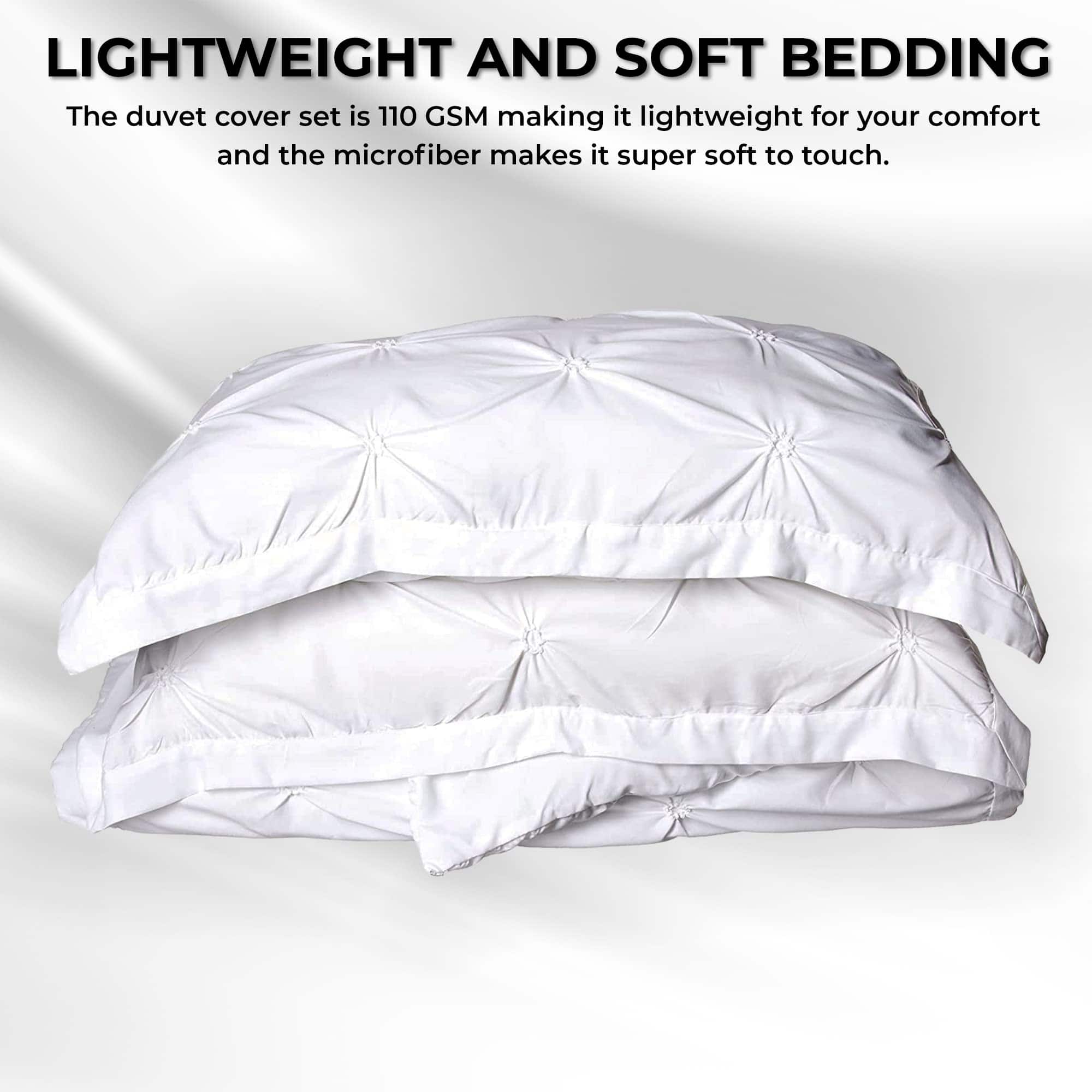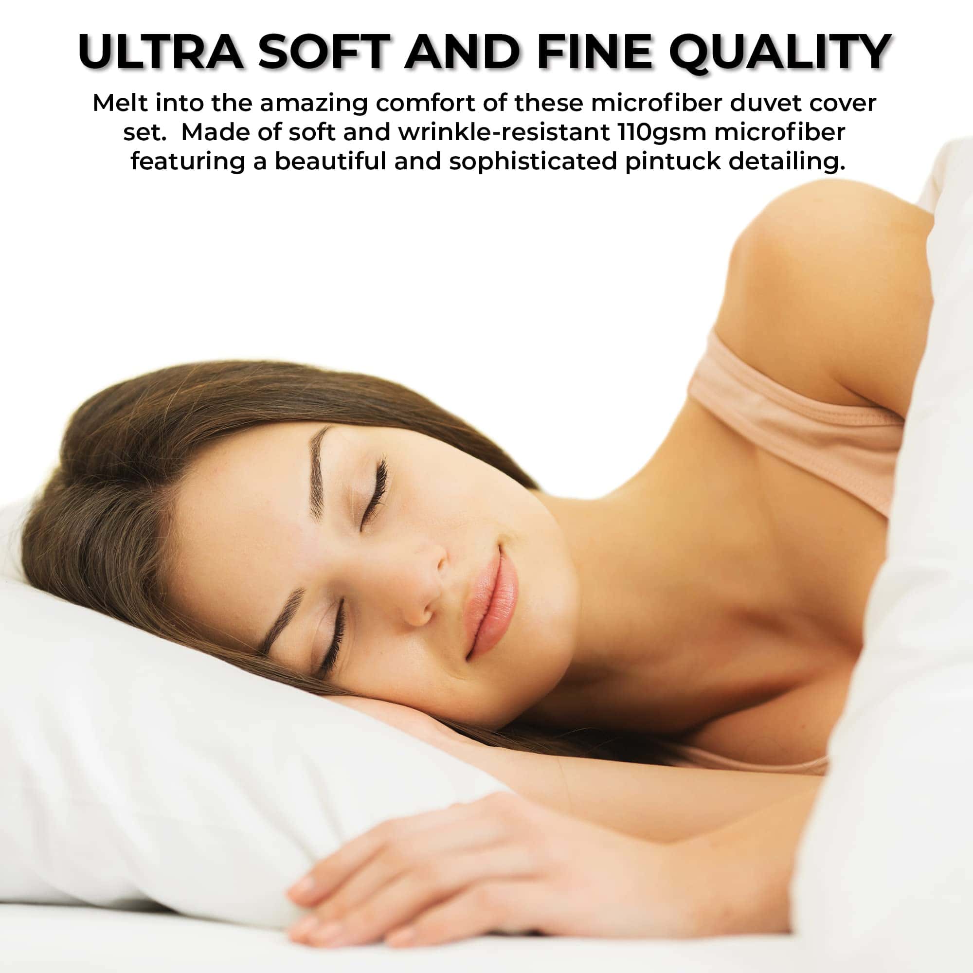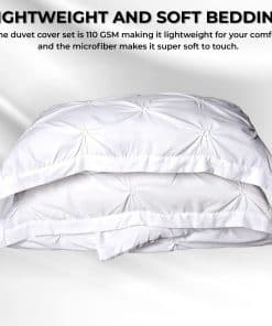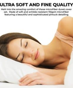 Este set de funda nórdica de Tribeca Living está detallado con hermosos pliegues. Si estás buscando agregar un toque de lujo a tu dormitorio, entonces esta es la ropa de cama para ti. En una variedad de colores desde el blanco impoluto hasta el cashmere de moda, habrá una tonalidad para ti. Su peso de 110 GSM la convierte en una funda nórdica ligera, diseñada para tu comodidad. La tela de microfibra es súper suave al tacto, lo que significa que meterte en la cama será un sueño. Y además, el set de cama es resistente a las arrugas, lo que significa que no tendrás que estar pegado a una plancha antes de engalanar tu cama con hermosa ropa de cama. Tu nuevo set de cama incluirá una funda nórdica queen o king con dos fundas de almohada a juego. Los lazos de esquina están dentro de la funda nórdica para asegurar el edredón en su lugar. Y no hay necesidad de preocuparse, tu set de funda nórdica bellamente elaborado puede ser lavado a máquina en casa. ¡Qué no hay para amar! ¡Tu único dilema ahora es elegir qué hermosa tonalidad elegir!