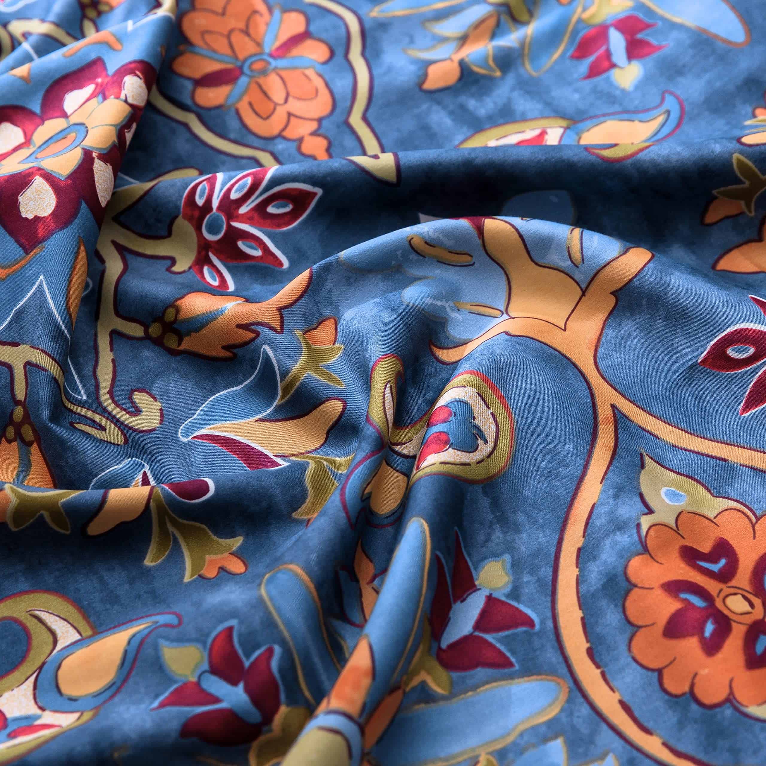 1. Juego lujoso de funda nórdica con estampado bohemio vintage. 2. Patrón clásico de medallón paisley en tonos vibrantes de Naranja Quemado, Azul Teal Polvoriento, Ocre Amarillo y Turquesa. 3. Incluye: 1 juego de 2 piezas que incluye 1 funda nórdica individual de 68 por 88 pulgadas y 1 funda de almohada estándar de 20 por 26 pulgadas. La funda nórdica tiene un cierre de botones oculto y lazos interiores para mantenerla en su lugar; la funda de almohada cuenta con un cierre de sobre. 4. Algodón egipcio de fibra larga de 400 hilos que se siente suave y sedoso contra tu piel, transpirable y absorbente de humedad. 5. Cada componente de este producto, es decir, cada hilo, botón y otros accesorios, ha sido probado en sustancias nocivas y por lo tanto el artículo es inofensivo para la salud humana. 6. Nota: Edredón NO INCLUIDO