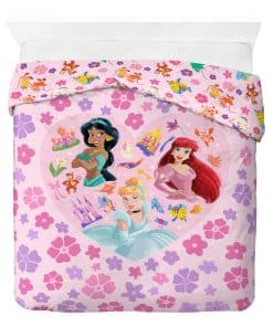 Transforma la habitación de tu hijo con nuestro set de funda nórdica Queen de 3 piezas Disney Princess, que incluye una funda nórdica y dos almohadas a juego. Perfecto para agregar confort, estilo y personalidad a cualquier habitación infantil, este set da vida a la hora de dormir con su diseño reversible y su toque lúdico. Fabricada con poliéster premium de microfibra cepillada al 100%, la funda nórdica y las almohadas son increíblemente suaves, duraderas y transpirables para una noche de sueño reparador. La funda nórdica incluye un cierre de botón para un uso fácil y un ajuste seguro, mientras que el diseño reversible te permite cambiar el aspecto de la cama de tu hijo cuando lo deseen. El set viene completo con una funda nórdica Queen (90″ x 90″) y dos almohadas a juego (20″ x 26″), facilitando la creación de un espacio de descanso coordinado y acogedor. Ideal tanto para niños como niñas, este set de funda nórdica es perfecto para uso diario, noches de pijama o como un regalo atento para cumpleaños y fiestas. Los diseños vibrantes con Moana, Cenicienta, Ariel, Rapunzel, Tiana, Bella y Jazmín agregan un toque de diversión a la decoración de cualquier habitación infantil, ayudando a estimular la imaginación y hacer que su habitación se sienta extra especial. Los padres adorarán la conveniencia de este set de funda nórdica lavable a máquina, asegurando un cuidado fácil y un color duradero que se ve genial lavada tras lavada. ¡Transforma hoy la habitación de tu hijo con este set de funda nórdica de Disney divertido, versátil y elegante la manera perfecta de crear un ambiente de descanso cómodo que les encantará!