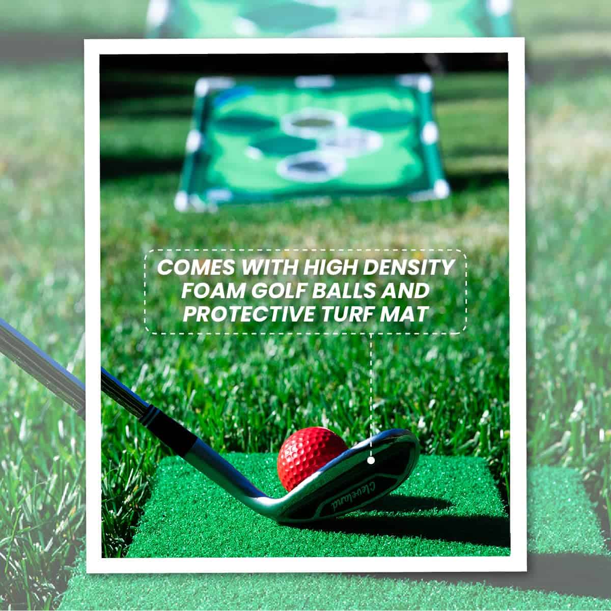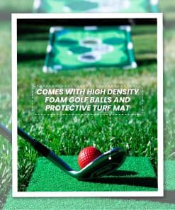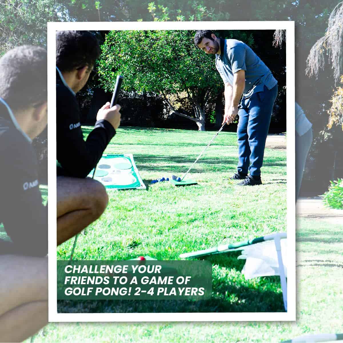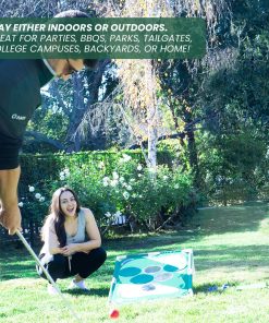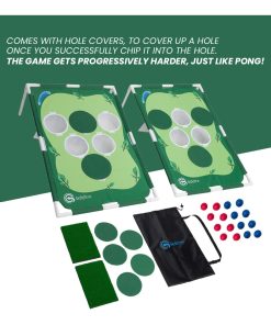 Desafía a tus amigos a jugar golf pong ya sea en interiores o exteriores. Ideal para fiestas, BBQs, parques, tailgates, campus universitarios, patios traseros o hogares. Viene con una bolsa de transporte para llevarlo a donde sea. Fácil montaje en minutos sin necesidad de herramientas adicionales. ¡Perfecto regalo para amantes del golf o cualquier persona que busque divertirse! Incluye 2 tableros objetivo, 16 bolas de espuma coloridas, 2 tapetes de césped, 12 cubiertas de hoyo, una bolsa portátil y un manual de reglas.