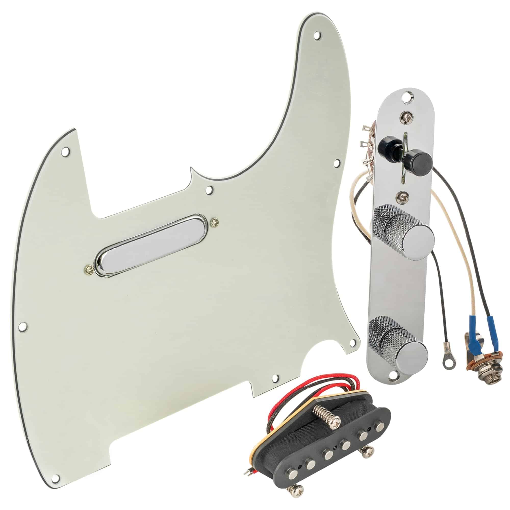 Set de Golpeador Pre-cableado y Placa de Control Cargada Musiclily Pro con Pastillas Artec Alnico 5 para Guitarra Eléctrica Estilo TL, 3 Capas Blanco Envejecido. Este set es una excelente opción para actualizar tu Telecaster Squier u otra guitarra de estilo similar importada. También es compatible con la mayoría de las guitarras eléctricas estilo Telecaster estándar modernas americanas/mexicanas, llevando tu tono al siguiente nivel. Las pastillas simples Artec con polos de imán Alnico 5 están diseñadas para brindar un sonido vintage auténtico, manteniendo el brillante tono twang de la Telecaster. Construido a mano por técnicos experimentados en nuestras instalaciones, utilizamos piezas premium de recursos confiables y nos enfocamos en cada detalle durante el cableado y las pruebas, enorgulleciéndonos de nuestro trabajo. El set incluye un golpeador pre-cableado y una placa de control cargada, con pastillas Artec (cuello/puente), potenciómetros, interruptor, jack de salida, condensador, mod de atenuación y cableado de estilo vintage. Además, viene con una guía de usuario que incluye un diagrama de cableado profesional para ayudarte a resolver cualquier problema de cableado que puedas tener.