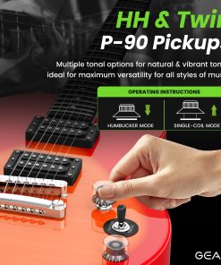 1. Dos Pastillas Humbucker: Equipada con dos pastillas Humbucker, esta guitarra ofrece una amplia gama de tonos versátiles, perfectos para rock, blues y country. Las pastillas dinámicas permiten ajustes fáciles, y la Humbucker de bobina dividida en la posición del mástil te permite cambiar entre modos de bobina simple y Humbucker con un botón de tono empujar-tirar.