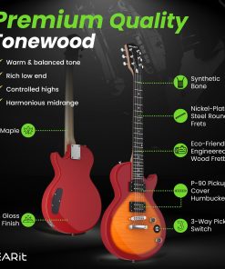 3. Juego Preciso y Control de Sonido Versátil: Los trastes redondeados ofrecen una jugabilidad suave, protegiendo tus manos de arañazos. El diapasón técnico ecológico ofrece comodidad, tono rico y complejidad. Los afinadores de fundición a presión garantizan una afinación precisa, mientras que el interruptor de pastilla de 3 vías te permite alternar fácilmente entre tonos agudos, medios y bajos. Personaliza aún más tu sonido con perillas de volumen y tono receptivas.