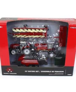 La edad recomendada es de 14+ años. El set de 4 piezas incluye uno de cada uno de los siguientes: Empacadora de Heno 2270XD, Cosechadora de Viento Autopropulsada WR9870, Massey Ferguson 8280, Rastrillo de Heno Hesston