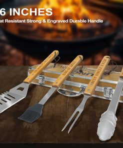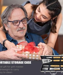 1. Regalo de herramientas de barbacoa para tío: el lujoso set de herramientas de barbacoa para tío está diseñado para durar toda la vida, hecho de acero inoxidable de primera calidad extra grueso que nunca se oxidará, doblará o romperá. Es un set básico de herramientas de barbacoa preparado para el tío amante de la barbacoa, que incluye 1 espátula multiusos, 1 tenedor para parrilla, 1 par de pinzas y 1 pincel de cocina. Todas las herramientas están empaquetadas en un resistente estuche de aluminio, perfecto para usar sobre la marcha o en casa. 2. Diseño y estilo de moda: el estuche exterior presenta palabras exclusivas diseñadas para el tío, con un acabado de grano de madera clásico que complementa cualquier entorno interior o exterior. Las herramientas de barbacoa tienen un diseño de mango de madera natural con un tacto suave, y el acero inoxidable forjado es resistente y duradero, lo que facilita el manejo de grandes trozos de carne. La herramienta de barbacoa premium es el set de utensilios de barbacoa de alta gama más buscado, y se puede decir con confianza que cualquier entusiasta de la barbacoa las amará. 3. Almacenamiento fácil y seguro: este práctico set de herramientas de barbacoa para tío viene con un exclusivo estuche portátil que es de alta gama, portátil y fácil de almacenar de forma segura, lo que lo hace adecuado para viajar, acampar o hacer senderismo. Las herramientas están colocadas de forma segura en cada posición, ideal para aquellos que prefieren mantener sus pertenencias ordenadas, limpias y organizadas. Este set incluye todo lo necesario para barbacoas en el patio trasero y es apto para lavavajillas para una limpieza fácil después de cada uso, para que puedas seguir usándolo la próxima vez. 4. Ultra duradero: todas las herramientas de barbacoa están fabricadas en acero inoxidable de grado profesional, resistente al calor y diseñadas para soportar un uso repetido sin doblarse ni romperse. Están hechas para durar, por lo que son el regalo perfecto para el tío que es un maestro asador y entusiasta de la barbacoa. Las pinzas y la espátula son resistentes pero ligeras, con mangos extendidos para mantener una distancia segura del fuego, así que no hay necesidad de preocuparse por quemaduras. 5. Los regalos de barbacoa perfectos para el tío: el tío se enamorará de este brillante set de herramientas de barbacoa de acero inoxidable a primera vista. Regala este lujoso set de herramientas de barbacoa como regalo para el tío en el Día del Padre, Día de San Valentín, Navidad, cumpleaños u otra ocasión especial, y verás cómo se le ilumina la cara de felicidad. Este set de herramientas de barbacoa en caja también es un excelente regalo para el tío, esposo o abuelo, ideal para acampar, picnics, patio trasero o uso doméstico. 6. Servicio y satisfacción: Este es el regalo perfecto para el Día del Padre para el tío, y hemos preparado meticulosamente este regalo exclusivo para ti en un día romántico. Estamos comprometidos a brindar a cada cliente el mejor servicio al cliente y la mejor experiencia de compra, y ofrecemos una garantía de devolución de dinero para cualquier pedido insatisfecho.