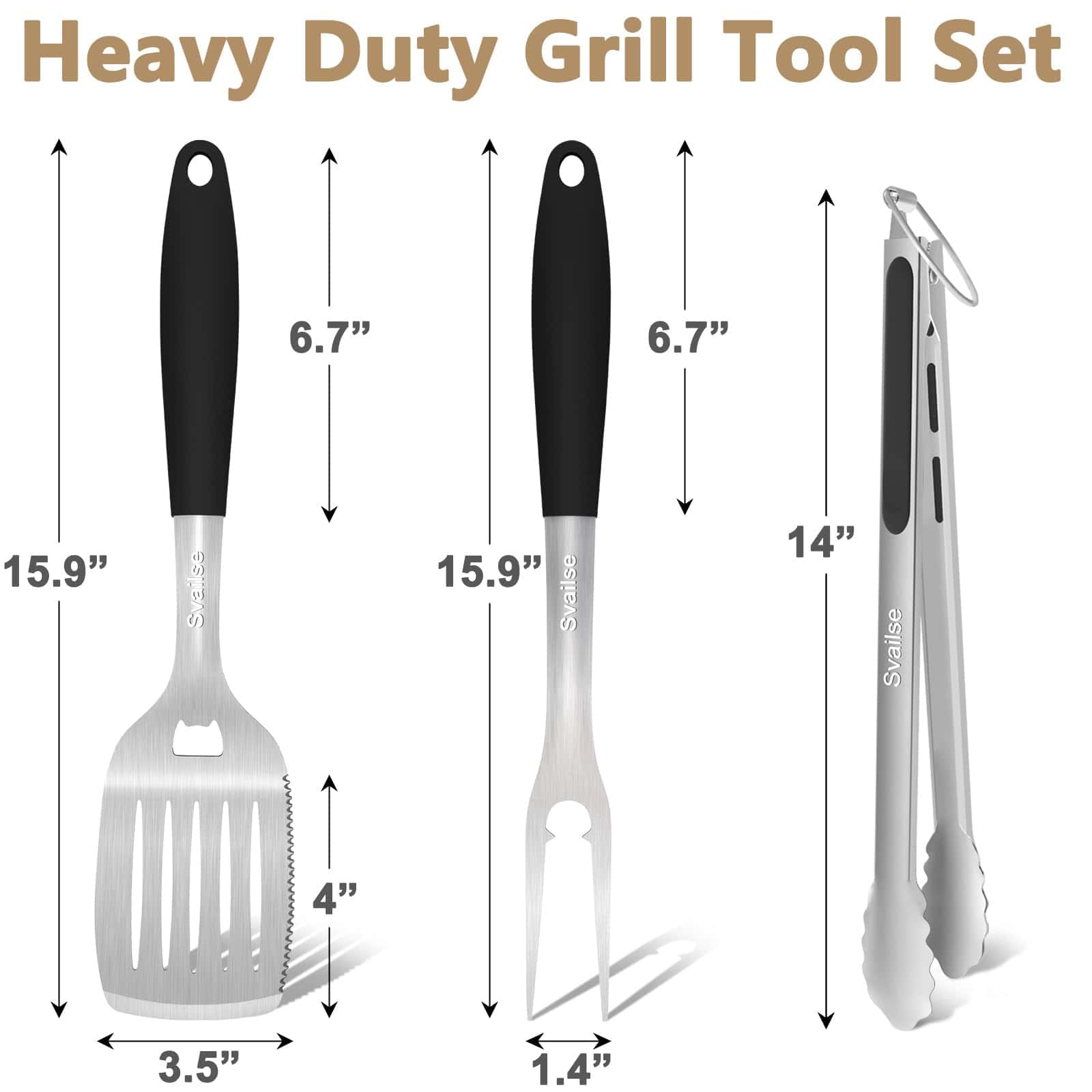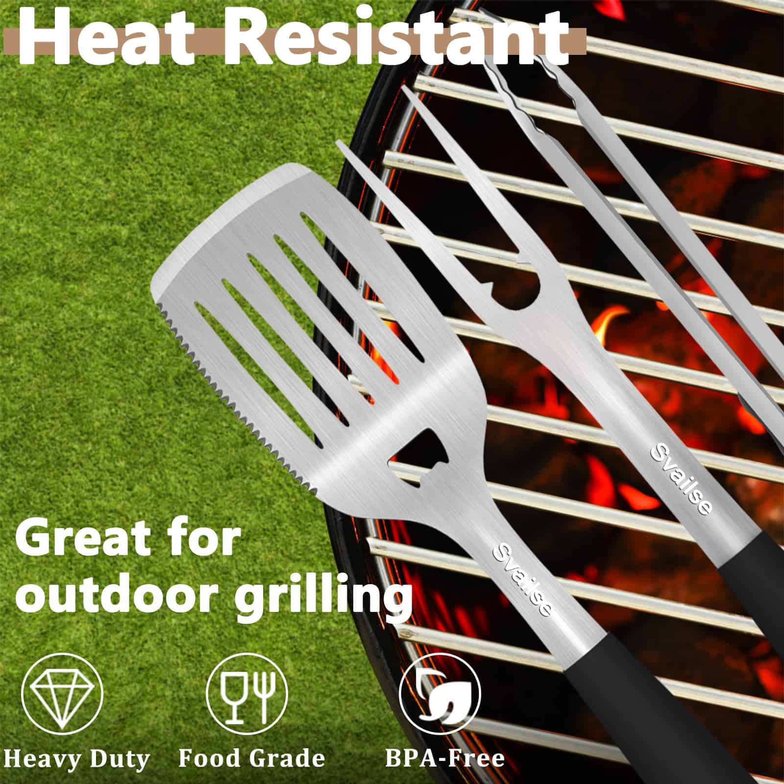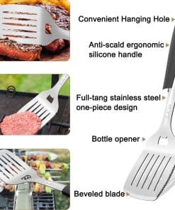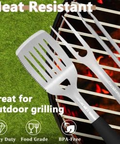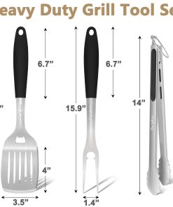 2. Material Grueso Mejorado: Nuestro juego de herramientas para asar está hecho de acero inoxidable grueso y duradero, garantizando resistencia al calor, solidez, resistencia a la corrosión y resistencia al óxido para un rendimiento duradero, es perfecto para sartenes de hierro fundido y parrillas.