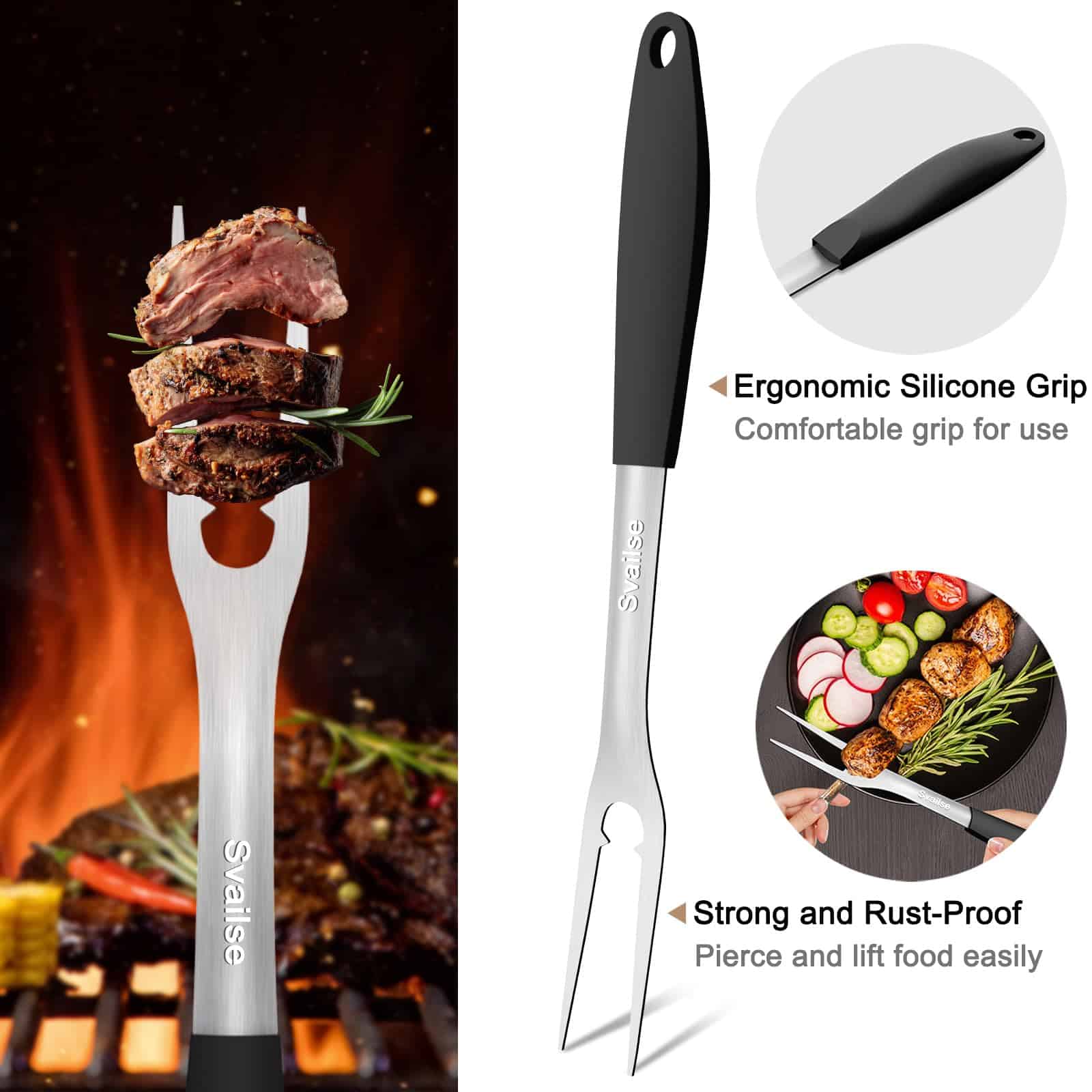 Set de Herramientas para Asar Svailse, 3 piezas de Acero