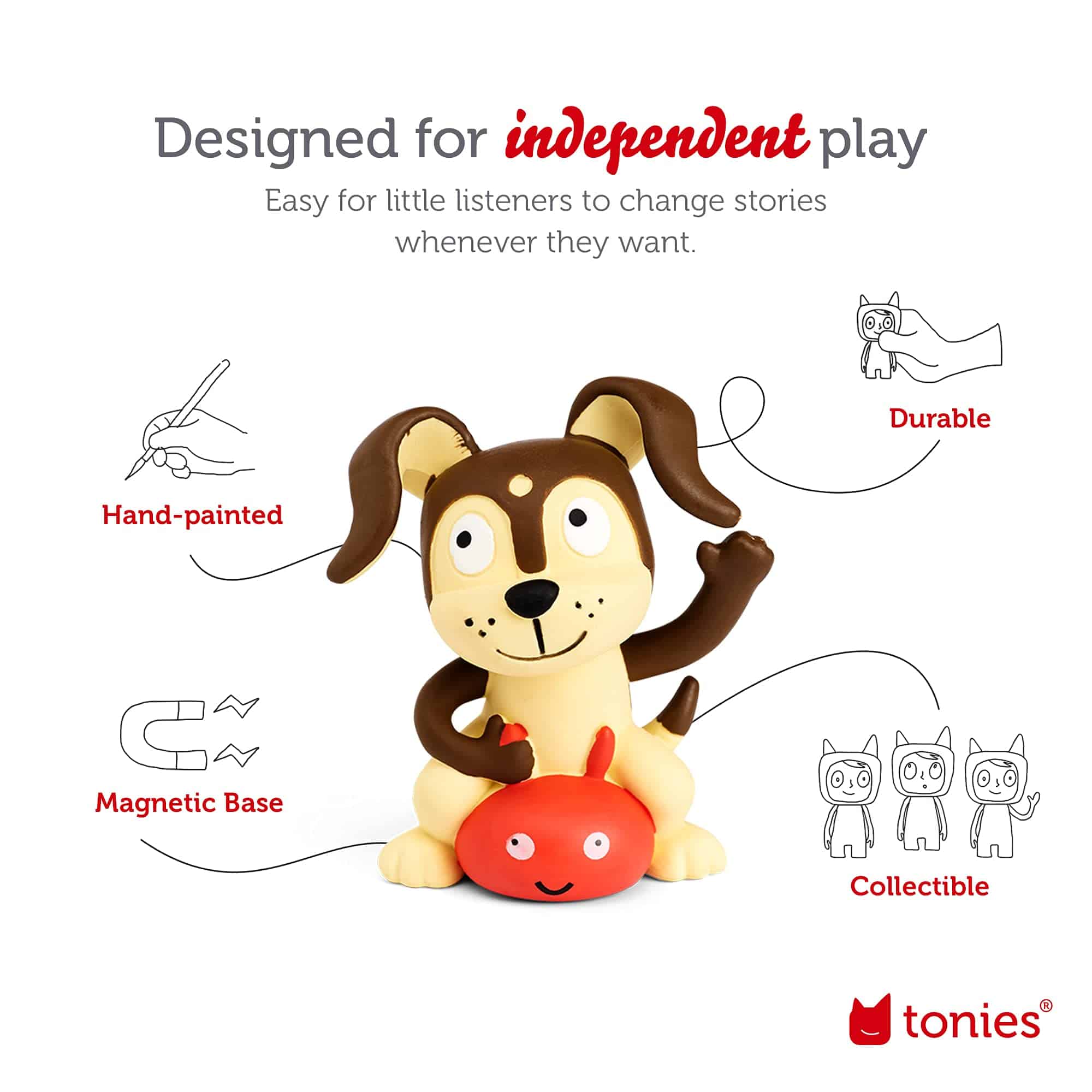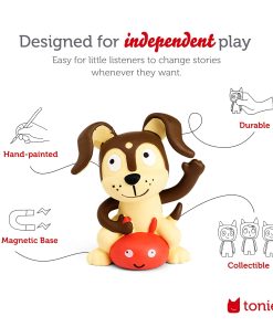 4. La reproducción comienza automáticamente cuando los personajes de audio Tonies se colocan en la Toniebox. Presionar las orejas cambia el volumen. Tocar los lados cambia las pistas.
