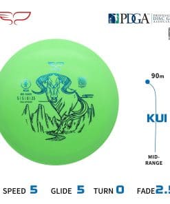 3. Disco de Alcance Medio | KUI tiene atributos relativamente equilibrados. Vuela recto y se desvanece suavemente al final. También tiene una distancia larga no menos que un driver de distancia. Es un disco «de alcance medio» fácil de usar y bien controlado.