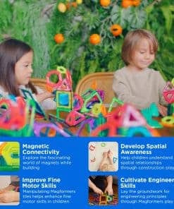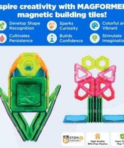 Los Azulejos Magnéticos Magformers son juegos de construcción magnéticos que permiten a los niños unir formas geométricas coloridas para construir creaciones interminables. ¡Descubre un enfoque fresco para la decoración de jardines todos los días! Sumérgete en el mundo verde de Magformers donde todos pueden crear encantadores compañeros de jardín centelleantes. Personaliza tu jardín para adaptarse a tu estado de ánimo con una variedad de formas y diseños. Crea colecciones de flores exclusivas utilizando cuadrados de azulejos holográficos. El diseño abierto de Magformers es perfecto para manos pequeñas, garantizando horas de diversión. Con piezas holográficas, árboles de la jungla, torres miniaturas, bases de tesoros y mini hexágonos; jardineros, botánicos y mentes creativas por igual estarán entretenidos interminablemente construyendo y cultivando sus paisajes imaginativos. Los bloques magnéticos siempre atractivos aseguran que las piezas se unan de forma segura para estructuras duraderas y se pueden apilar ordenadamente para el almacenamiento. Apto para edades de 3 en adelante, Magformers ayuda en el desarrollo de habilidades ya que STEM.org lo autentica para integrarse perfectamente en la educación STEM en casa o en la escuela. Estos azulejos magnéticos STEM se evalúan para alinearse con estándares científicos/matemáticos y habilidades del siglo 21. Los azulejos de construcción magnéticos de Magformers promueven el pensamiento crítico, la creatividad, la resolución de problemas y la colaboración. Este set involucra mentes jóvenes a través de la estimulación sensorial y el aprendizaje cinestésico.