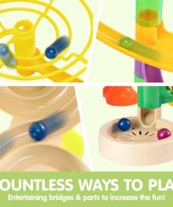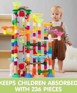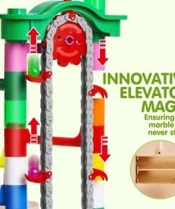 ¡Nuestro Set de Juego de Elevador de 236 Piezas está aquí para llevar el tiempo de juego a nuevas alturas! Incluyendo 176 piezas vibrantes de pista, 15 canicas de plástico elegantes, 30 canicas brillantes en la oscuridad y 15 canicas de vidrio clásicas, esta torre de canicas es una obra maestra completa de «carreras de canicas». La característica del ascensor único eleva esta pista de carreras de canicas de fresco a ¡WOW! Es emocionante ver cómo las canicas suben y bajan en un bucle interminable, asegurando que la carrera de canicas nunca se detenga. Hecho con materiales duraderos, nuestro juego de canicas para niños soporta la prueba del tiempo de juego. Este set de canicas está diseñado para durar, garantizando innumerables horas de diversión en carreras. ¡Apaga las luces y observa cómo la carrera se ilumina! Nuestras canicas brillantes añaden un brillo extra a los juegos de canicas de tu hijo, haciendo que la pista de carreras sea un espectáculo radiante en la oscuridad. Participa en una carrera de canicas que es genial para la interacción entre padres e hijos. Pasa tiempo de calidad construyendo y corriendo, creando recuerdos con cada enfrentamiento de set de canicas.